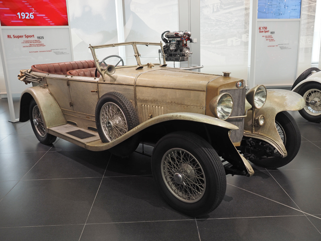 Musei Ferrari e Alfa Romeo, September 2015Part TwoDavid G. FoxOur first full day at Lake Maggiore promised to be rain drenched. What better time to sprint back down the autostrada to Arese, north west of central Milan, and the Museo Storico Alfa Romeo. The Alfa museum is in a beautifully remodeled facility in the woods just off the E62 outside of Milan. The building certainly looks as if it belongs to a company concerned with design. There is a showroom housing various new Alfas on the top floor (and there were a few new Jeep products arranged outside the building - products of Fiat Chrysler). In the large entryway to the building, backed by a glass wall and a view of the woods outside, sat one of Alfa's new 4C Spider sports cars. Engines were sprinkled throughout the exhibition. In the approach were several pre-WWII airplane engines, including this radial from 1939. Timeline of Production Cars1911 A.L.F.A 15 HP Corsa. 1925 RL Super Sport. 1931 6C 1750 Gran Sport Paris. The mild version of the 1752cc supercharged inline six cylinder engine produced 85hp and a top speed of 90mph. 1932 8C 2300 Corto "Mille Miglia." Ah, that magic year, 1932; it was good for more than just Fords. The 8C 2300 chassis was used under a limited number of Alfa Romeos produced between 1931 and 1934. The 2336cc light-alloy engines had eight cylinders in line, twin overhead camshafts, a supercharger, and put out 155hp. This was enough to move the 2205 pound Corto version to 115mph. 1931 8C 2300. The specifications listed for this specific engine indicated that the 2336cc displacement and assorted jewelry attached produced 163hp at 5400rpm. 1954 1900 Super Sprint. 1970 Montreal and its 2593cc V8 developing 194hp at 6400rpm. 2007 8C Competizione. Five hundred of these V8 powered cars were produced. Styling Exercises1952 1900 C52 Disco Volante barchetta by Touring. 1954 2000 Sportiva by Bertone. 1965 Giulia Sprint Speciale by Bertone. 1996 Nuvola by the Alfa Romeo Style Center. Superleggera Coupes1950 6C 2500 Super Sport "Villa d' Este." 1938 8C 2900 B Lungo. "Touring's masterpiece and the highest expression of the Alfa Romeo mystique." Only ten were produced. The Lungo's supercharged 2905cc eight cylinder engine produced 180hp at 5200rpm. Top speed was about 110mph. More from the Beauty Section1963 Giulia TZ. Zagato styling on a tube chassis. Do you think Pete Brock studied one of these before designing the Cobra Daytona Coupe? Note the reflection of the Kamm-effect rear end. Giulia Sprint Speciale, body by Bertone. 1966 1600 Spider "Duetto" - the Graduate. 1955 Giulietta Spider prototype. "Designed by Pinin Farina for the USA." Speed1925 GP Tipo P2. Twin carburetors and a supercharger give the 1987cc eight 155hp, which was enough for 140mph. 1931 8C 2300 Monza. "Born as a GT, goes on to challenge the Grand Prix. Campari and Nuvolari confirm its place among the greats." 1936 GP Tipo C 12C. Seemingly unusual for an Alfa is the 60 degree V12 in this car. It measures 4064cc, produces 370hp at 5800rpm, and took the 12C to 180mph. Two carburetors, two superchargers, beautiful bodywork, and only six were built. 1951 GP Tipo 159 "Alfetta." The engine in this car is back to the straight eight (dual block) configuration and smaller displacement. This generation, supercharged, but with just 1479cc, put out 425hp at 9300rpm and was capable of pushing the Formula 1 Alfetta to 190mph. The GP Tipo 158 Alfetta was a pre-WWII design. They were fitted with 1479cc supercharged eights, which subsequently worked within new post-war Formula One rules. Both the Tipo 158 and 159 engines were two-valve, twin overhead cam designs. The Tipo 159 gained about 75hp over the later versions of the 158, as it benefitted from a pair of two-stage superchargers, rather than just one for the Tipo 158. 1952 GP Tipo 160 Boxer 12 with 2483cc and 281hp at 10,000rpm. Alfa retired from Grand Prix racing before finishing development of the Tipo 160 race car. 1977 Tipo 33 SC 12 Turbo. Power comes from a 2134cc, four-valve boxer 12, with four cams, twin turbos, and 640hp at 12,000rpm. 1935 P Bimotore. Yes, that's a second engine in the back. Each 3165cc straight eight was rated at 270hp. Note the Scuderia Ferrari logo. The beautiful Alfa museum is kind of in the countryside, so we had a late lunch in the restaurant on site and then headed north toward Como. Soon we were again in the rain that continued to soak the northern-most part of Italy. In addition to the rain, it was clear that George and Amal weren't going to be available for a visit, so we ventured farther north by Lake Como into Switzerland, up, around, and back down to our hotel on Lake Maggiore and an anniversary dinner. The Alfa museum website, museoalfaromeo.com, has photographs and descriptions covering a significant number of the cars in the collection. I did find fault with a couple of inernal links, but the site is definitely worth studying. |