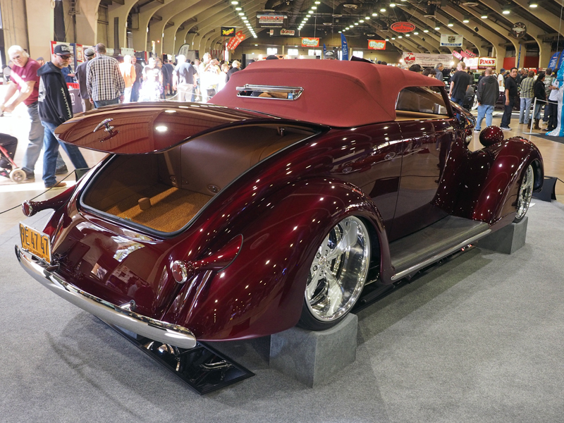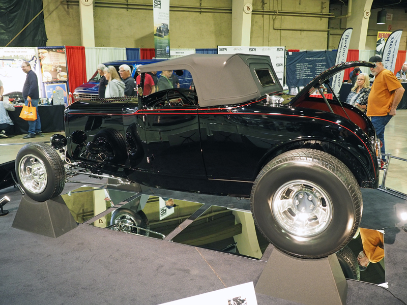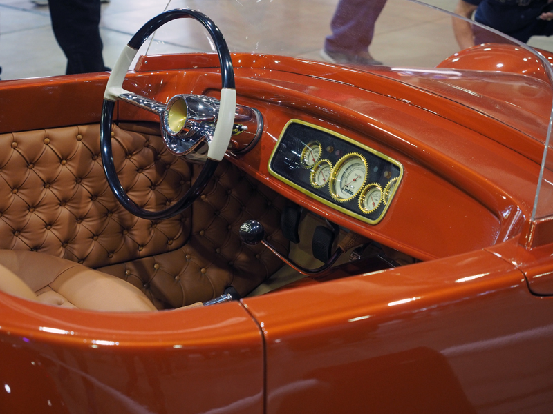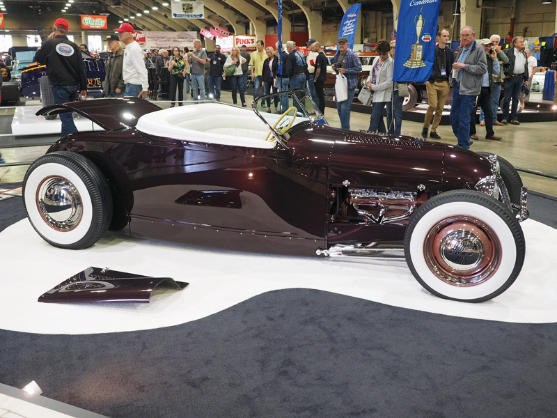 The Grand National Roadster Show, 2018David G. FoxAMBR CompetitionAt the Grand National Roadster Show, I asked a few knowledgeable friends for their prediction about which car would win the big trophy this year. The consensus seemed to be "the blue '31 Model A." The sentiment was occasionally preceded by "I really like car X (typically a period piece), but..." The requisite flawless execution is certainly there with the Martin Special. So is a huge amount of curb appeal. Presentation, stance, modifications, components, colors, etc., all the choices made are very fitting for a roadster at this level of competition. The body of the Martin Special is described as "Original-ish Ford." The -ish translates to a fair amount of custom coachwork. Particularly notice the resized, reshaped, and flush-mounted suicide doors. Drivetrain details are: fuel injected aluminum Brodix engine by Ed Pink, Richmond five-speed transmission, Winters quick-change differential, and custom-made wheels. The chassis is described as modified original '32 Ford, with a Moal-designed torsion-bar front suspension. Credit is given to Hot Rods and Hobbies for body, paint, and final assembly, and to Elegance Auto Interiors. The overall effect is streetable hot rod, with just enough race-car inspiration. On YouTube, there is a four-minute video on "The Martin Racing Special - AMBR Contender 2018." It has voice-over description by the owner, Dave Martin, and a few moments with the builder. Dave has owned this car for a number of years, in various states of build. The video has beautiful imagery of the car competing, in bare metal, in the Silver State Classic Challenge. Dave was not so much interested in winning the Challenge, as in proving the ability of the car to competently cover a one hundred mile open road course; it did, with an average speed of 101.505 mph. Dave Martin is an L.A. architect; artistry and craftsmanship, obviously, are not new to him. Although gravitating toward '32s, I find there can be something equally appealing about a well-sorted highboy Model A roadster. The body is lithe where a '32 is voluptuous - more dancer than muse. And, perhaps it is a bit more streamlined, cutting a narrower path, say, at Bonneville. The A is different, but, with work, can make its own magic. The deep red '32, owned and built by John Leonti of San Jose, is called "il Dolce" Deuce. John assembled the exterior body panels, along with fabricating the inner structure and floor. The completed body is mounted to a TCI frame with independent front suspension and a 460hp, 355-inch Chevy engine mated to a 700R4 transmission. At back is a Speedway Engineering quick change. The car uses a Dick Rodwell windshield and top; the custom hood and rear rolled pan are by Jack Hagemann, Jr. Stitching is the work of Ron Mangus; body finishing and paint are by Gary's Rods and Restorations. Mike Taylor developed the "Devine Wine" custom color. Pretty sweet. Transporting us back to March, 1952, are Thomas Bobowski and his restored Eddie Dye roadster. That is the date on the cover of the Hop Up Magazine that features the car. The Ayala brothers originally built the roadster in 1950 at Gil's Auto Body in East L.A. The custom nose and hood were shaped by Whitey Clayton, and the car ran at the 1951 Bonneville Nationals. Circle City Hot Rods, in Orange California, is given overall credit for the redo. Specific credits go to East Bay Speed & Custom for body and paint, Plante Interiors, Sherm's Custom Plating, and Logan Davis for the engine. The effective display of the Eddie Dye roadster, by Jeffrey James at Sugar City Design, included a very nice cutaway illustration by Jim Richards. Oh. What is it? It's a track-nosed Model A with a flathead motor, no doors, and it sits too low to the ground. In other words, it's perfect. Stinger is the '32 Ford roadster owned and built by Sean Black of Hartselle, Alabama. It uses a Brookville body with metal work by Steadfast Manufacturing, body finishing and paint by Adams Hot Rod Shop, and upholstery by M&M Hot Rod Interiors. All that sits on a So-Cal Speed Shop chassis. The paint color on Sean's roadster is 1963 Sting Ray Daytona Blue. The 327/365hp motor looks great sitting under the hood, but Corvette purists would quibble with calling an engine of that spec a 1963. Bill Nash, of Santa Monica, owns the conservative, black with red 1930 Model A built by Precision Street Rods and Machines, in Northridge, California. The display photo of the car sans body shows a dual quad small block Chevy with an automatic, coupled to a quick-change differential. There is a triangulated four-bar suspension based around coil-overs in the back, and a traditional axle with hairpins and a transverse spring up front. Okay, I could gush over this particular '32 Ford roadster forever. I'll try to contain myself. Designed and built for Bob Morris by Don Thelen at Buffalo Motorcars in the early 1990s, the so-called Nickel Roadster has had other owners, but now is in the capable hands of Bruce Meyer. Here is a quote from the placard displayed with the car. "...the Nickel Roadster invokes the timeless qualities of the Doane Spencer 1932 Ford roadster with a modern flair. Exhibiting classic nickel-finished, hand crafted components and striking design combined around the seminal Deuce high boy roadster, it is presented here to celebrate the world-class craftsmen who ignored trends and invested their craft in this enduring, timeless hot rod." The craftsmen? Here is a sampling. Buffalo Motorcars: bodywork, including the extended cowl and filled shell. Ron Covell: aluminum rolled pan and fuel tanks. Steve Davis: aluminum lift-off top and three-piece hood. Pete Eastwood: complete chassis. Dan Gurney (yes) and Allen Jennings: Ford small-block 302 with Gurney-Weslake heads. John Carambia: DuPont black acrylic lacquer (for some, there is really nothing like it). Ron Mangus: green leather and wool, plus the eleven-gauge dash. Ford Motorsports supplied t