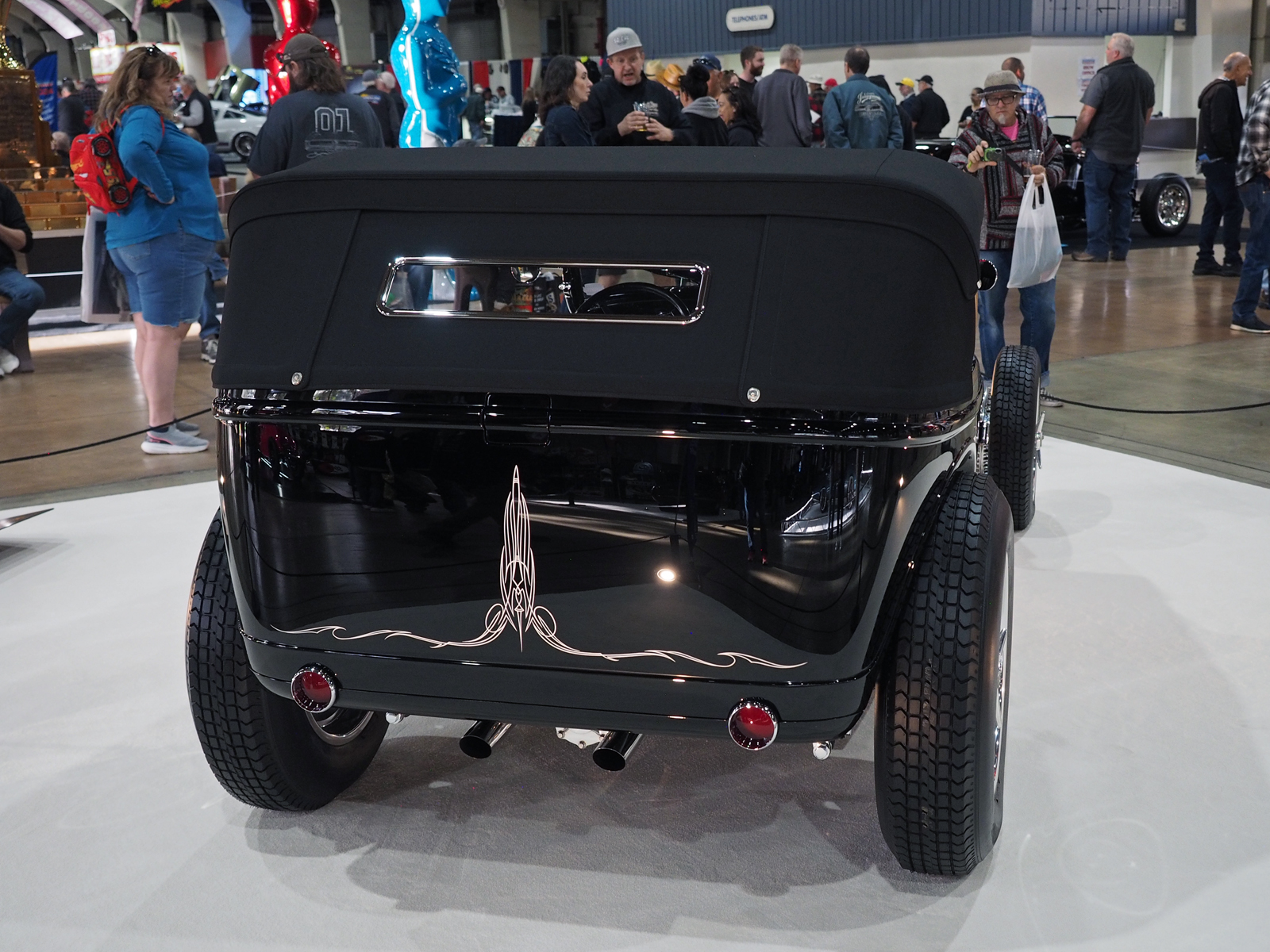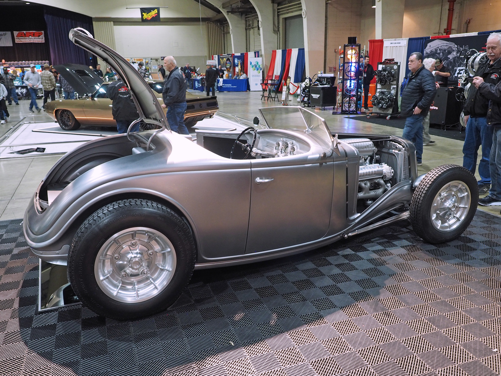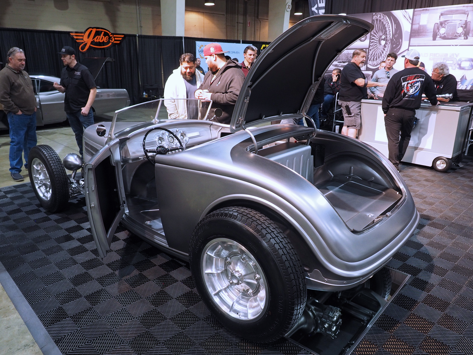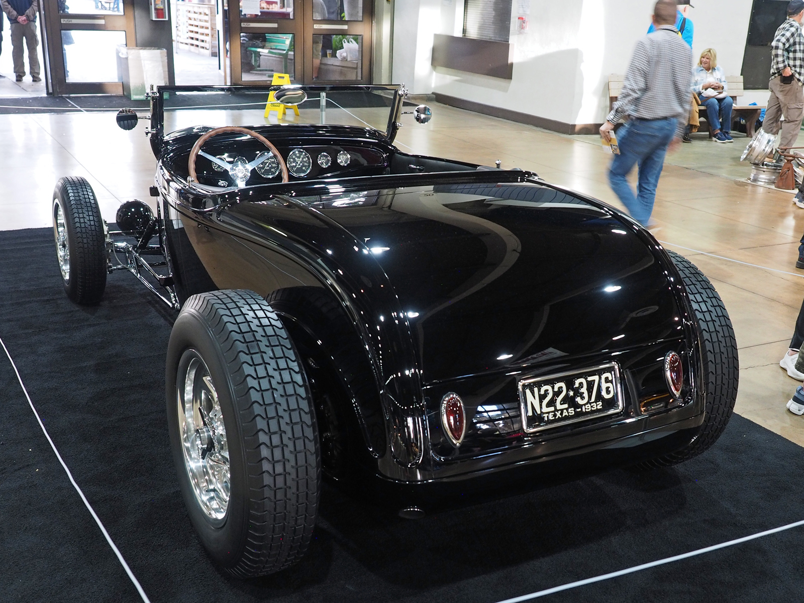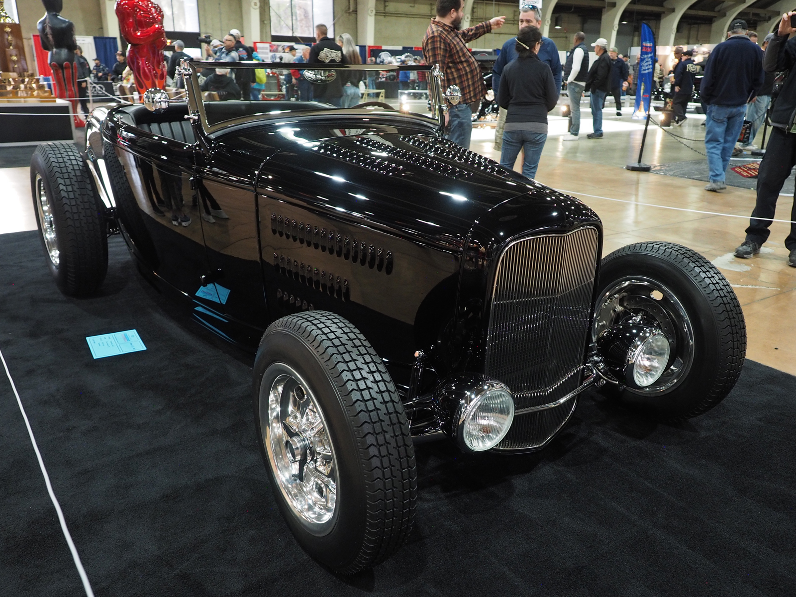 The Grand National Roadster Show, 2024David G. FoxAMBR CompetitionFor decades, flawless execution has been the hallmark of cars participating in the competition to be named America's Most Beautiful Roadster. This year there were nine entries. Phantom Phaetons It seems undeniable that the popularity of the 1932 Ford has reigned supreme and unwavering since they became financially available to hotrodders and since they began to be "fixed up" by early Ford V8 restorers. Certainly, Model Ts, Model As, Model 40s, etc., have always had their devotees, and will continue to do so. But the popularity of the Deuce has remained strong. And all of that seems to go double for the roadsters. Seven of nine AMBR contestants this year were '32 Fords, all but two were roadsters. Since the '32 was produced for only nine months and has always been so popular, the need for more "tin" spawned a reproduction market. From Dee Wescott's faithful and well-constructed fiberglass roadster bodies to the various modern steel panels and complete assemblies from Brookville Roadster, '32s continue to be pieced together or built all new. But what's a hotrodder to do with a need for a drive in a topless '32 Ford – sun on the face, wind in the hair, the rumble from a healthy V8 echoing from the back – and a desire to share that experience with more than one other person at a time? Throw in the fact that rodders have typically shied away from two too many doors. What to do? Ford's product line for 1930 and 1931 included, in addition to the standard four-door phaeton, a somewhat more elegantly turned out two-door open touring car called a Deluxe Phaeton. How about a '32 Deluxe Phaeton? Ford didn't make one. A few years ago, Brookville Roadster set out to do what Ford did not, and they enlisted the extraordinary talent of Chip Foose to design and build the prototype. A production run of 32 units was planned. On examination, you can tell that Chip borrowed from Brookville's existing '32 Ford body panel stash. One might liken the suicide door shape and fitment to a '33. But the cowl and door panels start with '32 three-window Deluxe Coupe stampings. Thus, there is continuity from the Model A days begging to refer to this new body style as a Deluxe Phaeton. These Brookville bodies were the outward visual basis for two contenders in the 2024 America's Most Beautiful Roadster competition Beth Myers, Skippack PA, 1932 Ford America's Most Beautiful Roadster Beth Myers' black, channeled two-door phaeton was built by the team at Roy Brizio Street Rods in South San Francisco. The foundation consists of: fully boxed frame rails, Moal torsion-bar suspension, Bell front axle, Winters Quick Change differential, and Johnson Hot Rod Shop Kinmont-style disk brakes. Under the hood is a fuel-injected Roush 427ci engine. Credits include: Vintage Color Studios for final body prep and paint, Sid Chavers for the interior, Sherm's Custom Plating, flames by Art Himsl, and pinstriping by Eric Reyes. The body on Beth's car received numerous nips and tucks – some mild cosmetic tweaks, others, such as the raised and re-radiused rear wheel wells, likely necessitated by the body being channeled over the frame. The rear of the body has been reshaped to be more like that of a two-door sedan. The windshield and top have been chopped three inches. Beth Myers' 2024 AMBR winner shouts hot rod, but is every bit as much the coach-build as any of the others in the field. Ken Reister, Littleton CO, 1932 Ford AMBR Outstanding Display, Paint, Interior As you can see, Ken chose a different approach to the look of his phaeton, which was built in his shop with finish work completed at Squeeg's Kustoms in Arizona. It's all quite elegant. Squeeg's was responsible for applying the Candy Apple Red over gold base paint, including subtle ghost painting (which, unfortunately, barely shows in the photographs). Other credits include: Reister's Rod Shop for the chassis, Recovery Room Hot Rod Interiors for the premium leather upholstery and wool carpet inside, Sid Chavers for the Hartz cloth top, and Custom Chrome for plating. Truespoke wire wheels are spun by a 340hp fuel-injected Ford 302 backed by a Ford 4R70 transmission. These two phantom phaetons are not the first to compete for the AMBR trophy. For the 2019 show, Gary Corkell used Brookville body number three in the construction of a full-fendered car powered by a 1953 DeSoto hemi engine. Reinforcing the potential of such bodies, Tom Sargis' bid for the AMBR that year was a '33 Ford Phaeton with a body converted to a two-door by Steve's Restorations. George Poteet's remarkable '36 Ford "3 Penny Roadster" was that year's AMBR winner. Also in 2019, Beth Myers' other '32 two-door phaeton (Brookville body number 2), was displayed in Brizio's area. An ultra-stock looker, complete with Washington Blue paint, black fenders, cream painted wire wheels, etc., it received a first-place finish in the Pre-1935 Touring Class. Full Kugel independent suspension belied the stock coach-built look of that beautiful car. Ken and Tina Thurm, Orange CA, 1932 Ford Ford Coyote engine with Gurney Weslake fuel injection Ramin and Karla Younessi, Fort Collins CO, 1934 Ford AMBR Outstanding Engine "The Throwback" sports a 255ci Mercury flathead, four James Butler, Prescott AZ, 1932 Ford Gary Holyoak, Cedar City UT, 1932 Ford H&H Best Dressed Flathead Mekenzie Murphy, Loveland OH, 1932 Ford AMBR Outstanding Detail, Engineering, Undercarriage Bob Mansonin, Auburn CA, 1932 Ford Dale and Lottie Short, Henderson CO, 1932 Chevrolet Jack Chisenhall, San Antonio TX, 1932 Ford 2023 America's Most Beautiful Roadster Bill Lindig, Pomona CA, 1927 Ford 2012 America's Most Beautiful Roadster Al Slonaker Memorial AwardThe Al Slonaker Memorial Award competition works much like the AMBR competition. The difference is that the cars can be anything but roadsters. Here is a quick look at the 2024 Slonaker contestants. David Rush, Oklahoma City OK, 1959 Chevrolet Al 