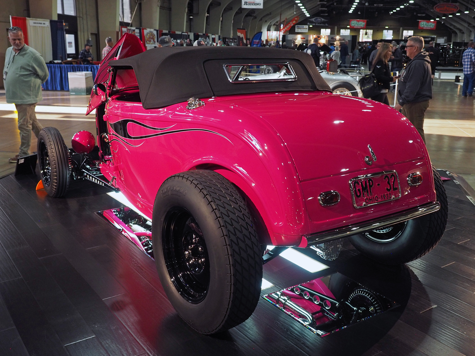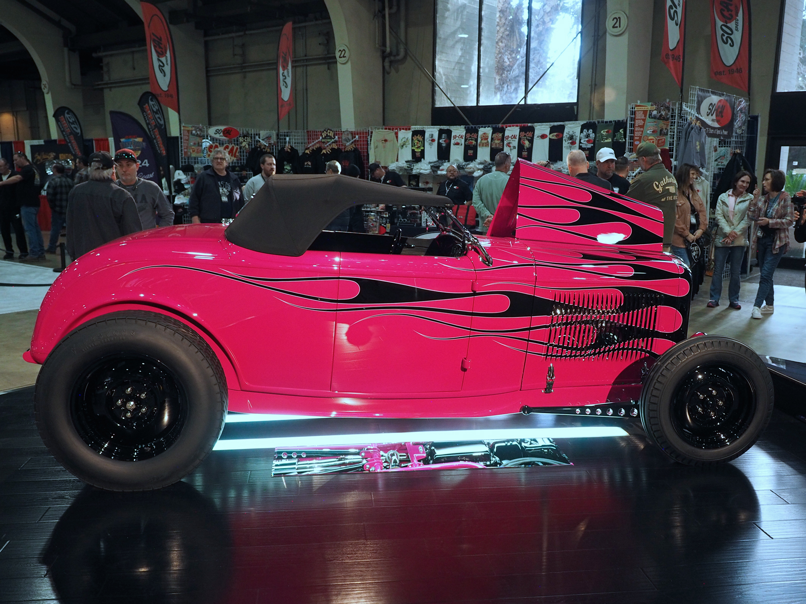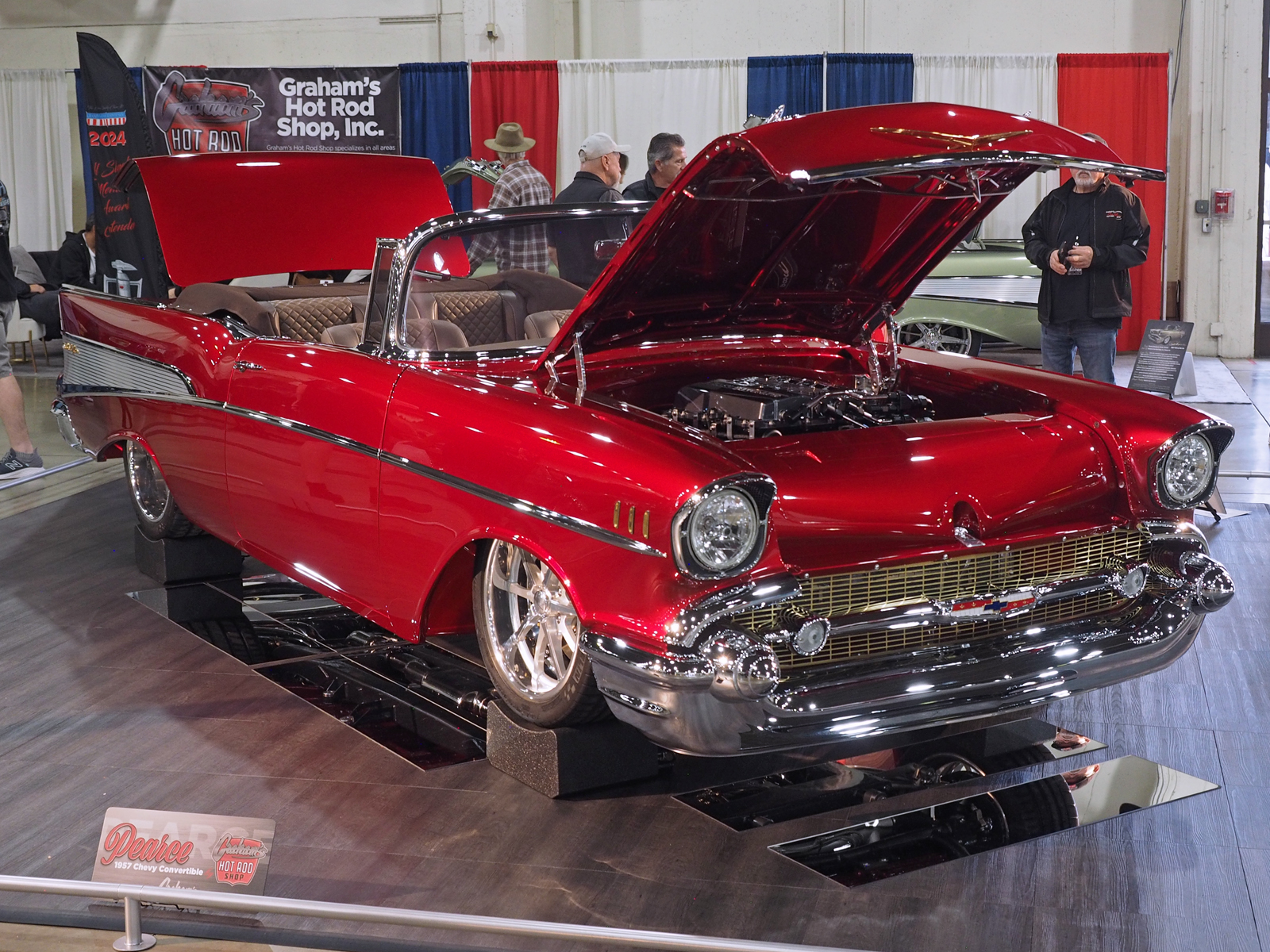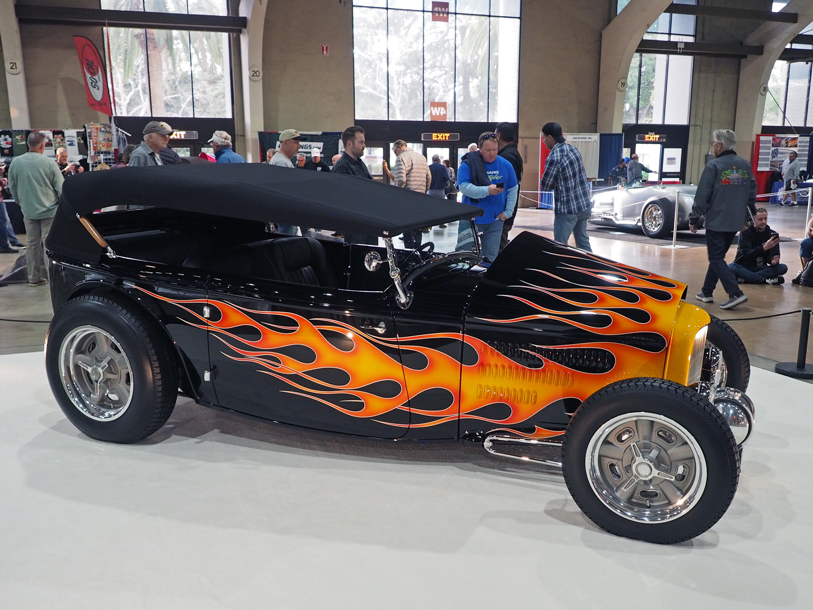 The Grand National Roadster Show, 2024David G. FoxAMBR CompetitionFor decades, flawless execution has been the hallmark of cars participating in the competition to be named America's Most Beautiful Roadster. This year there were nine entries. Phantom Phaetons It seems undeniable that the popularity of the 1932 Ford has reigned supreme and unwavering since they became financially available to hotrodders and since they began to be "fixed up" by early Ford V8 restorers. Certainly, Model Ts, Model As, Model 40s, etc., have always had their devotees, and will continue to do so. But the popularity of the Deuce has remained strong. And all of that seems to go double for the roadsters. Seven of nine AMBR contestants this year were '32 Fords, all but two were roadsters. Since the '32 was produced for only nine months and has always been so popular, the need for more "tin" spawned a reproduction market. From Dee Wescott's faithful and well-constructed fiberglass roadster bodies to the various modern steel panels and complete assemblies from Brookville Roadster, '32s continue to be pieced together or built all new. But what's a hotrodder to do with a need for a drive in a topless '32 Ford – sun on the face, wind in the hair, the rumble from a healthy V8 echoing from the back – and a desire to share that experience with more than one other person at a time? Throw in the fact that rodders have typically shied away from two too many doors. What to do? Ford's product line for 1930 and 1931 included, in addition to the standard four-door phaeton, a somewhat more elegantly turned out two-door open touring car called a Deluxe Phaeton. How about a '32 Deluxe Phaeton? Ford didn't make one. A few years ago, Brookville Roadster set out to do what Ford did not, and they enlisted the extraordinary talent of Chip Foose to design and build the prototype. A production run of 32 units was planned. On examination, you can tell that Chip borrowed from Brookville's existing '32 Ford body panel stash. One might liken the suicide door shape and fitment to a '33. But the cowl and door panels start with '32 three-window Deluxe Coupe stampings. Thus, there is continuity from the Model A days begging to refer to this new body style as a Deluxe Phaeton. These Brookville bodies were the outward visual basis for two contenders in the 2024 America's Most Beautiful Roadster competition Beth Myers, Skippack PA, 1932 Ford America's Most Beautiful Roadster Beth Myers' black, channeled two-door phaeton was built by the team at Roy Brizio Street Rods in South San Francisco. The foundation consists of: fully boxed frame rails, Moal torsion-bar suspension, Bell front axle, Winters Quick Change differential, and Johnson Hot Rod Shop Kinmont-style disk brakes. Under the hood is a fuel-injected Roush 427ci engine. Credits include: Vintage Color Studios for final body prep and paint, Sid Chavers for the interior, Sherm's Custom Plating, flames by Art Himsl, and pinstriping by Eric Reyes. The body on Beth's car received numerous nips and tucks – some mild cosmetic tweaks, others, such as the raised and re-radiused rear wheel wells, likely necessitated by the body being channeled over the frame. The rear of the body has been reshaped to be more like that of a two-door sedan. The windshield and top have been chopped three inches. Beth Myers' 2024 AMBR winner shouts hot rod, but is every bit as much the coach-build as any of the others in the field. Ken Reister, Littleton CO, 1932 Ford AMBR Outstanding Display, Paint, Interior As you can see, Ken chose a different approach to the look of his phaeton, which was built in his shop with finish work completed at Squeeg's Kustoms in Arizona. It's all quite elegant. Squeeg's was responsible for applying the Candy Apple Red over gold base paint, including subtle ghost painting (which, unfortunately, barely shows in the photographs). Other credits include: Reister's Rod Shop for the chassis, Recovery Room Hot Rod Interiors for the premium leather upholstery and wool carpet inside, Sid Chavers for the Hartz cloth top, and Custom Chrome for plating. Truespoke wire wheels are spun by a 340hp fuel-injected Ford 302 backed by a Ford 4R70 transmission. These two phantom phaetons are not the first to compete for the AMBR trophy. For the 2019 show, Gary Corkell used Brookville body number three in the construction of a full-fendered car powered by a 1953 DeSoto hemi engine. Reinforcing the potential of such bodies, Tom Sargis' bid for the AMBR that year was a '33 Ford Phaeton with a body converted to a two-door by Steve's Restorations. George Poteet's remarkable '36 Ford "3 Penny Roadster" was that year's AMBR winner. Also in 2019, Beth Myers' other '32 two-door phaeton (Brookville body number 2), was displayed in Brizio's area. An ultra-stock looker, complete with Washington Blue paint, black fenders, cream painted wire wheels, etc., it received a first-place finish in the Pre-1935 Touring Class. Full Kugel independent suspension belied the stock coach-built look of that beautiful car. Ken and Tina Thurm, Orange CA, 1932 Ford Ford Coyote engine with Gurney Weslake fuel injection Ramin and Karla Younessi, Fort Collins CO, 1934 Ford AMBR Outstanding Engine "The Throwback" sports a 255ci Mercury flathead, four James Butler, Prescott AZ, 1932 Ford Gary Holyoak, Cedar City UT, 1932 Ford H&H Best Dressed Flathead Mekenzie Murphy, Loveland OH, 1932 Ford AMBR Outstanding Detail, Engineering, Undercarriage Bob Mansonin, Auburn CA, 1932 Ford Dale and Lottie Short, Henderson CO, 1932 Chevrolet Jack Chisenhall, San Antonio TX, 1932 Ford 2023 America's Most Beautiful Roadster Bill Lindig, Pomona CA, 1927 Ford 2012 America's Most Beautiful Roadster Al Slonaker Memorial AwardThe Al Slonaker Memorial Award competition works much like the AMBR competition. The difference is that the cars can be anything but roadsters. Here is a quick look at the 2024 Slonaker contestants. David Rush, Oklahoma City OK, 1959 Chevrolet Al 