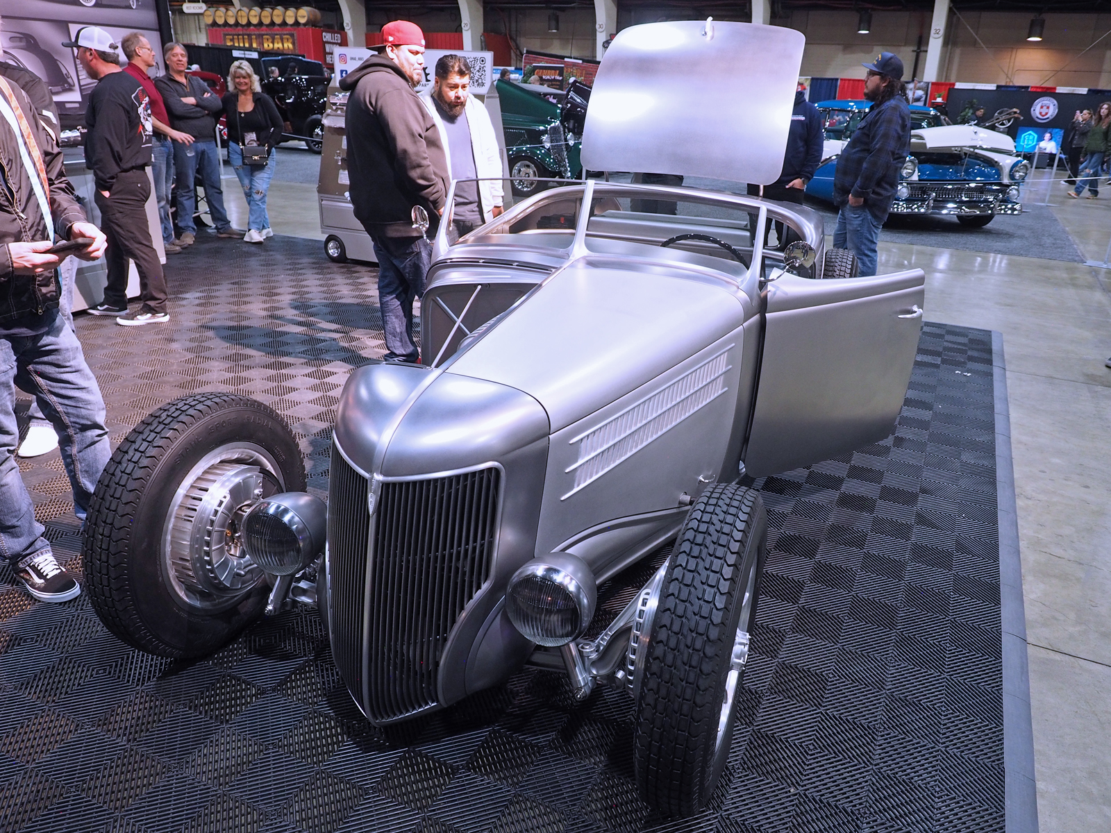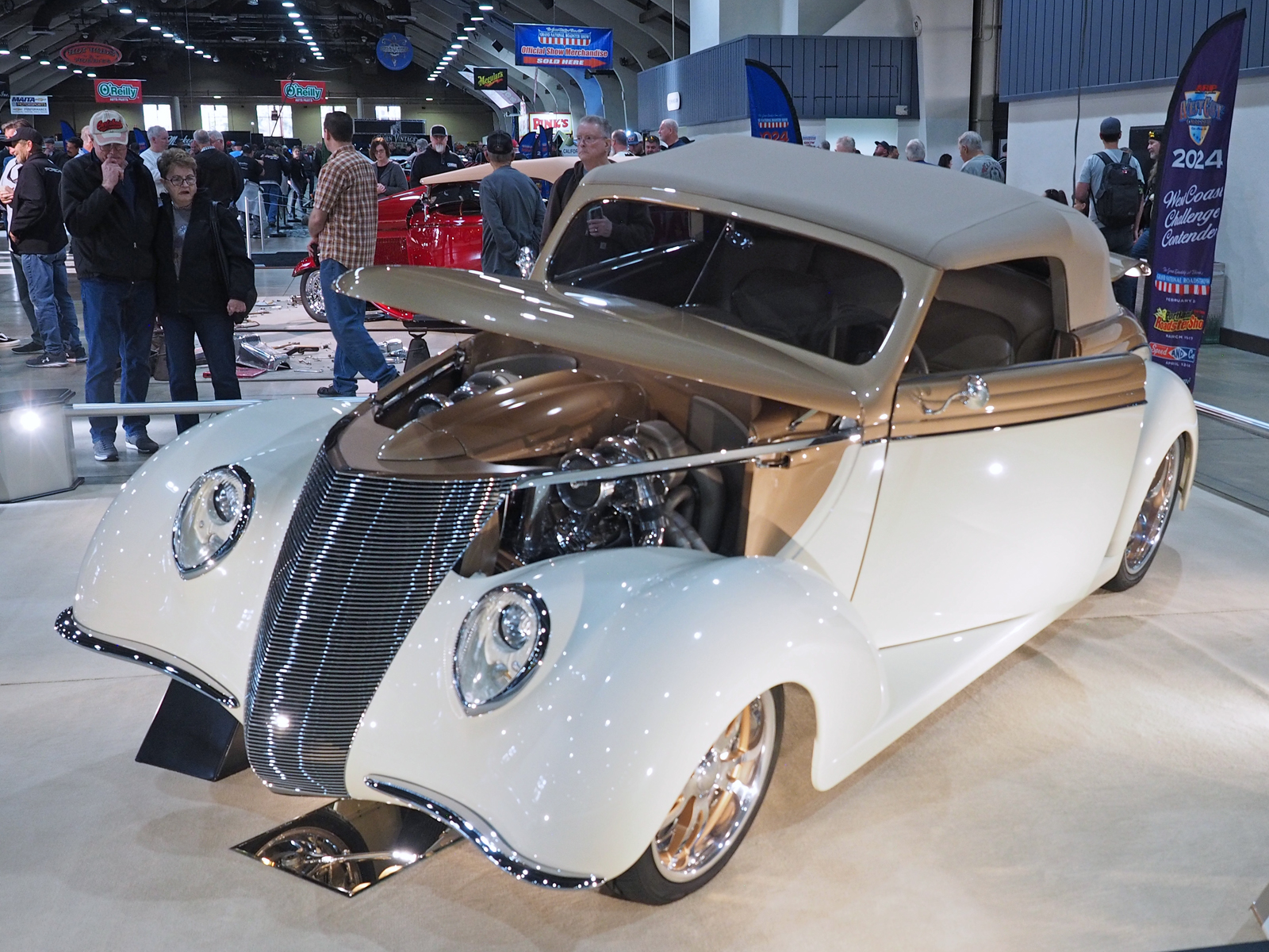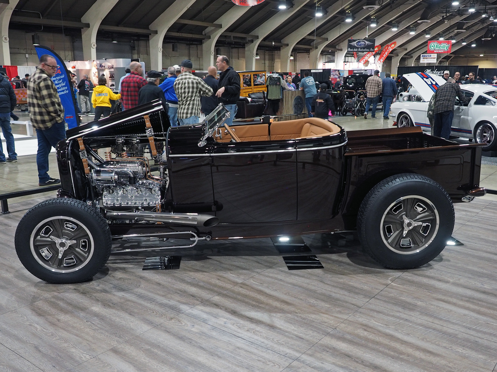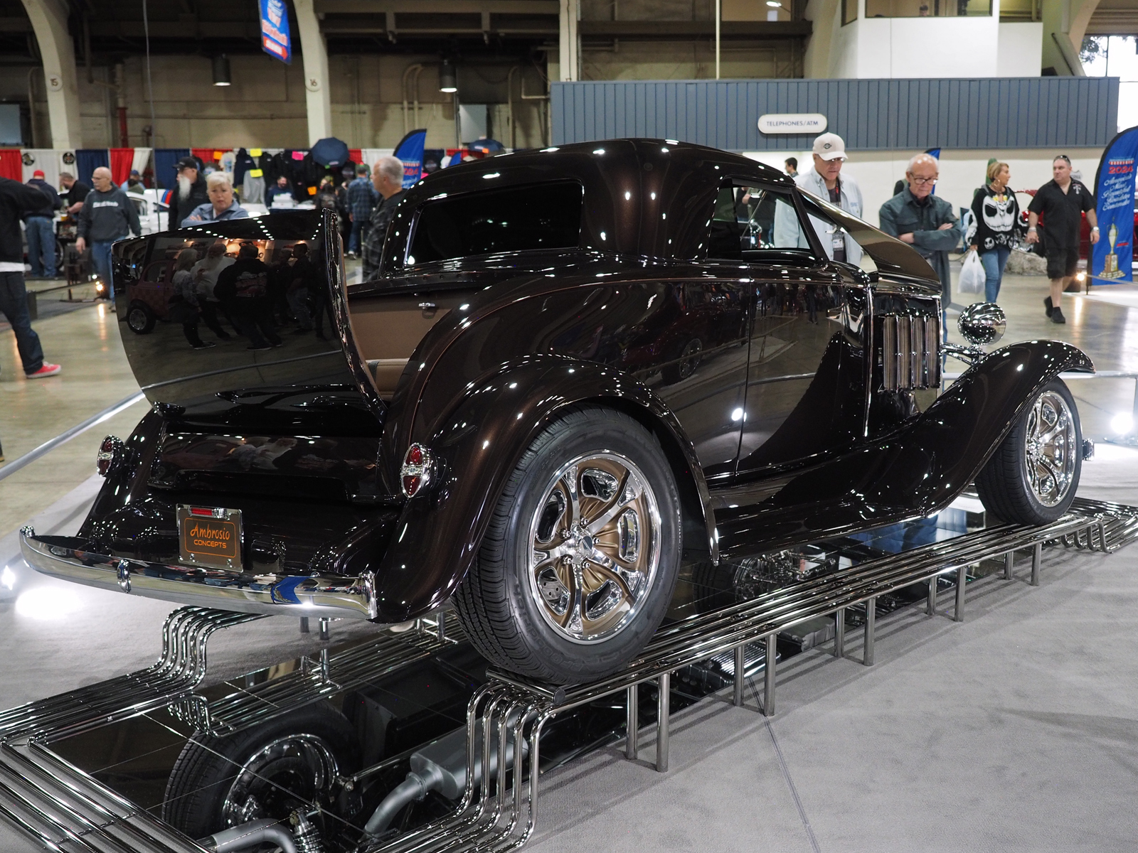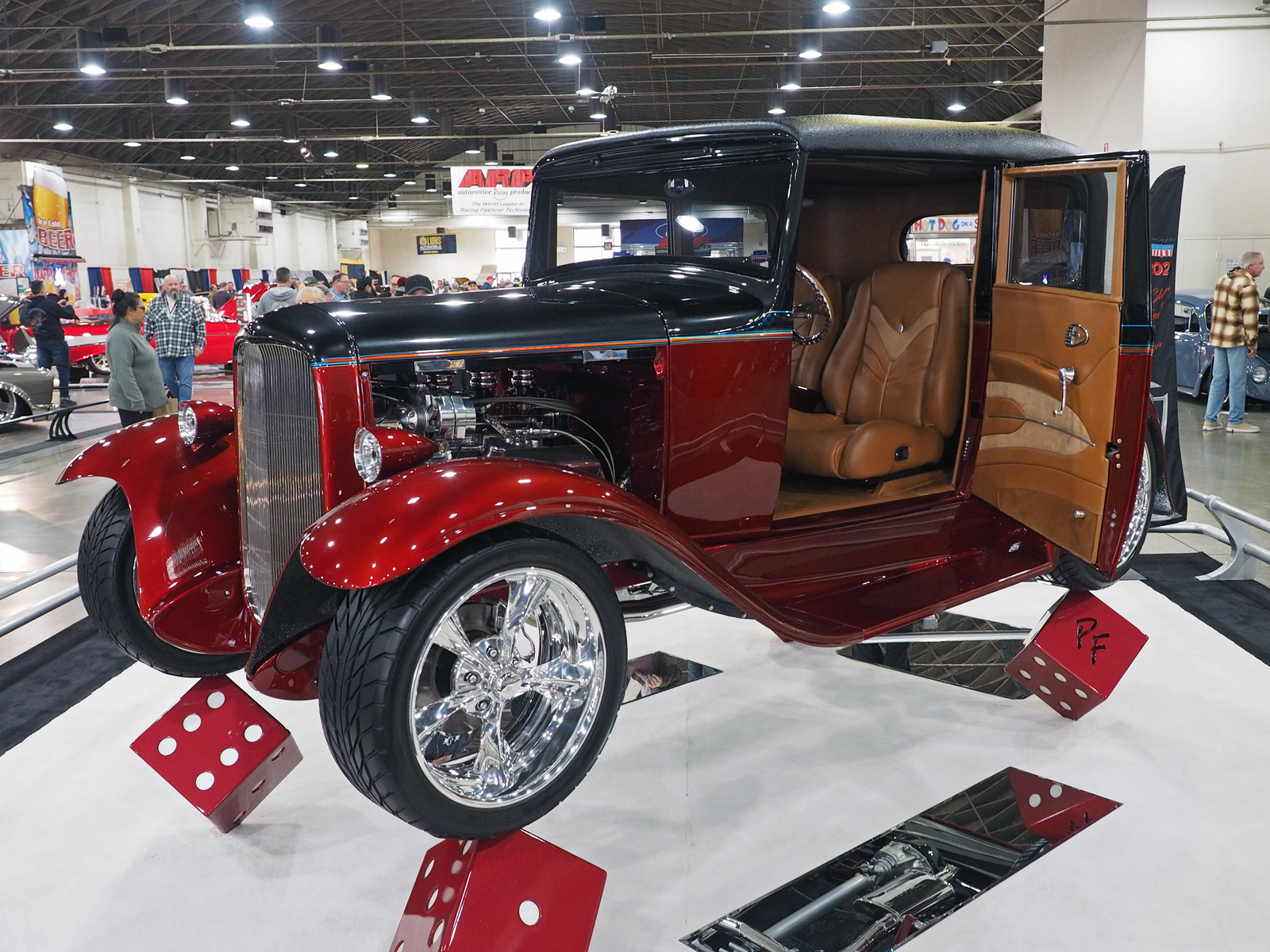 The Grand National Roadster Show, 2024David G. FoxAMBR CompetitionFor decades, flawless execution has been the hallmark of cars participating in the competition to be named America's Most Beautiful Roadster. This year there were nine entries. Phantom Phaetons It seems undeniable that the popularity of the 1932 Ford has reigned supreme and unwavering since they became financially available to hotrodders and since they began to be "fixed up" by early Ford V8 restorers. Certainly, Model Ts, Model As, Model 40s, etc., have always had their devotees, and will continue to do so. But the popularity of the Deuce has remained strong. And all of that seems to go double for the roadsters. Seven of nine AMBR contestants this year were '32 Fords, all but two were roadsters. Since the '32 was produced for only nine months and has always been so popular, the need for more "tin" spawned a reproduction market. From Dee Wescott's faithful and well-constructed fiberglass roadster bodies to the various modern steel panels and complete assemblies from Brookville Roadster, '32s continue to be pieced together or built all new. But what's a hotrodder to do with a need for a drive in a topless '32 Ford – sun on the face, wind in the hair, the rumble from a healthy V8 echoing from the back – and a desire to share that experience with more than one other person at a time? Throw in the fact that rodders have typically shied away from two too many doors. What to do? Ford's product line for 1930 and 1931 included, in addition to the standard four-door phaeton, a somewhat more elegantly turned out two-door open touring car called a Deluxe Phaeton. How about a '32 Deluxe Phaeton? Ford didn't make one. A few years ago, Brookville Roadster set out to do what Ford did not, and they enlisted the extraordinary talent of Chip Foose to design and build the prototype. A production run of 32 units was planned. On examination, you can tell that Chip borrowed from Brookville's existing '32 Ford body panel stash. One might liken the suicide door shape and fitment to a '33. But the cowl and door panels start with '32 three-window Deluxe Coupe stampings. Thus, there is continuity from the Model A days begging to refer to this new body style as a Deluxe Phaeton. These Brookville bodies were the outward visual basis for two contenders in the 2024 America's Most Beautiful Roadster competition Beth Myers, Skippack PA, 1932 Ford America's Most Beautiful Roadster Beth Myers' black, channeled two-door phaeton was built by the team at Roy Brizio Street Rods in South San Francisco. The foundation consists of: fully boxed frame rails, Moal torsion-bar suspension, Bell front axle, Winters Quick Change differential, and Johnson Hot Rod Shop Kinmont-style disk brakes. Under the hood is a fuel-injected Roush 427ci engine. Credits include: Vintage Color Studios for final body prep and paint, Sid Chavers for the interior, Sherm's Custom Plating, flames by Art Himsl, and pinstriping by Eric Reyes. The body on Beth's car received numerous nips and tucks – some mild cosmetic tweaks, others, such as the raised and re-radiused rear wheel wells, likely necessitated by the body being channeled over the frame. The rear of the body has been reshaped to be more like that of a two-door sedan. The windshield and top have been chopped three inches. Beth Myers' 2024 AMBR winner shouts hot rod, but is every bit as much the coach-build as any of the others in the field. Ken Reister, Littleton CO, 1932 Ford AMBR Outstanding Display, Paint, Interior As you can see, Ken chose a different approach to the look of his phaeton, which was built in his shop with finish work completed at Squeeg's Kustoms in Arizona. It's all quite elegant. Squeeg's was responsible for applying the Candy Apple Red over gold base paint, including subtle ghost painting (which, unfortunately, barely shows in the photographs). Other credits include: Reister's Rod Shop for the chassis, Recovery Room Hot Rod Interiors for the premium leather upholstery and wool carpet inside, Sid Chavers for the Hartz cloth top, and Custom Chrome for plating. Truespoke wire wheels are spun by a 340hp fuel-injected Ford 302 backed by a Ford 4R70 transmission. These two phantom phaetons are not the first to compete for the AMBR trophy. For the 2019 show, Gary Corkell used Brookville body number three in the construction of a full-fendered car powered by a 1953 DeSoto hemi engine. Reinforcing the potential of such bodies, Tom Sargis' bid for the AMBR that year was a '33 Ford Phaeton with a body converted to a two-door by Steve's Restorations. George Poteet's remarkable '36 Ford "3 Penny Roadster" was that year's AMBR winner. Also in 2019, Beth Myers' other '32 two-door phaeton (Brookville body number 2), was displayed in Brizio's area. An ultra-stock looker, complete with Washington Blue paint, black fenders, cream painted wire wheels, etc., it received a first-place finish in the Pre-1935 Touring Class. Full Kugel independent suspension belied the stock coach-built look of that beautiful car. Ken and Tina Thurm, Orange CA, 1932 Ford Ford Coyote engine with Gurney Weslake fuel injection Ramin and Karla Younessi, Fort Collins CO, 1934 Ford AMBR Outstanding Engine "The Throwback" sports a 255ci Mercury flathead, four James Butler, Prescott AZ, 1932 Ford Gary Holyoak, Cedar City UT, 1932 Ford H&H Best Dressed Flathead Mekenzie Murphy, Loveland OH, 1932 Ford AMBR Outstanding Detail, Engineering, Undercarriage Bob Mansonin, Auburn CA, 1932 Ford Dale and Lottie Short, Henderson CO, 1932 Chevrolet Jack Chisenhall, San Antonio TX, 1932 Ford 2023 America's Most Beautiful Roadster Bill Lindig, Pomona CA, 1927 Ford 2012 America's Most Beautiful Roadster Al Slonaker Memorial AwardThe Al Slonaker Memorial Award competition works much like the AMBR competition. The difference is that the cars can be anything but roadsters. Here is a quick look at the 2024 Slonaker contestants. David Rush, Oklahoma City OK, 1959 Chevrolet Al 