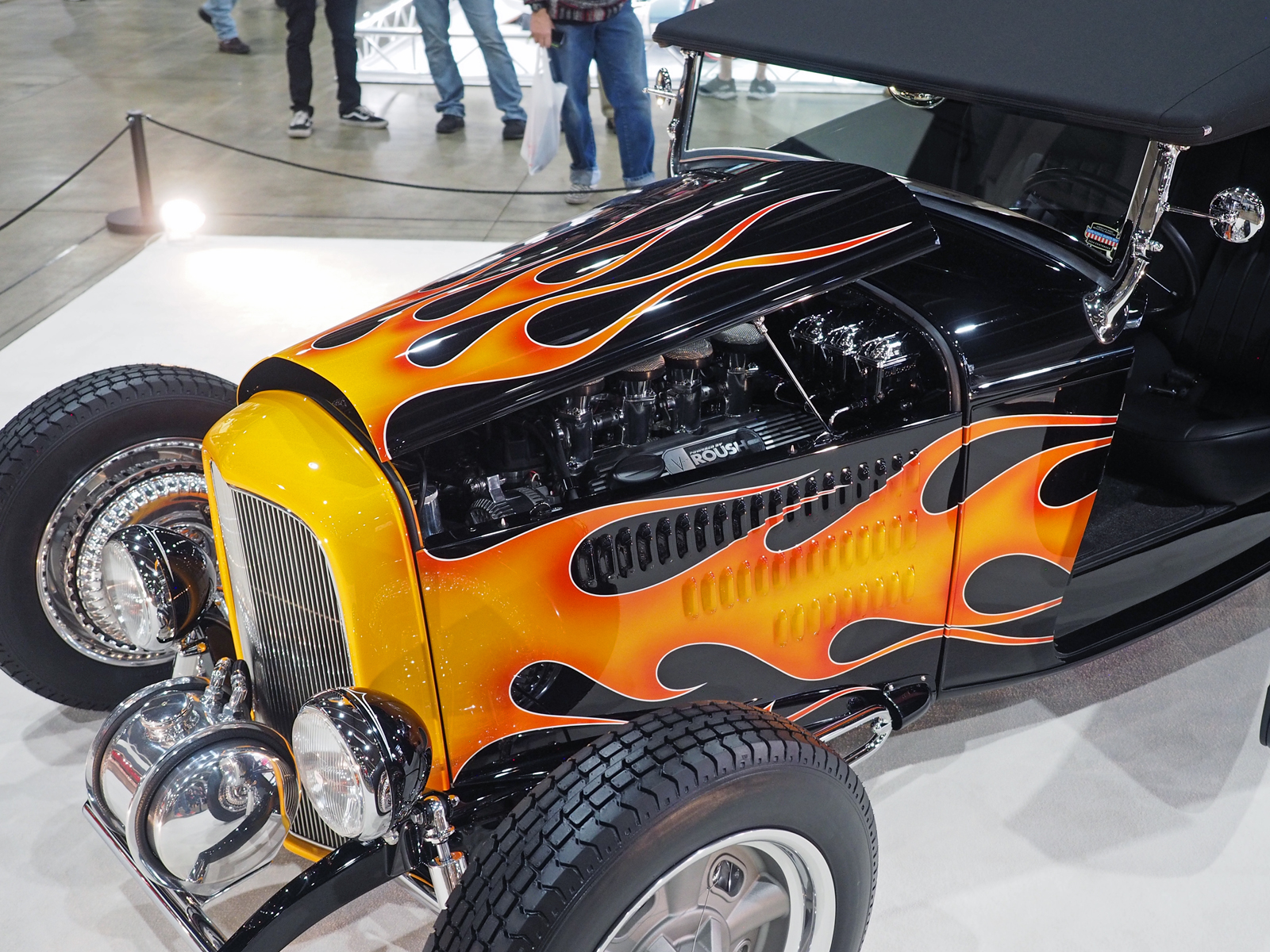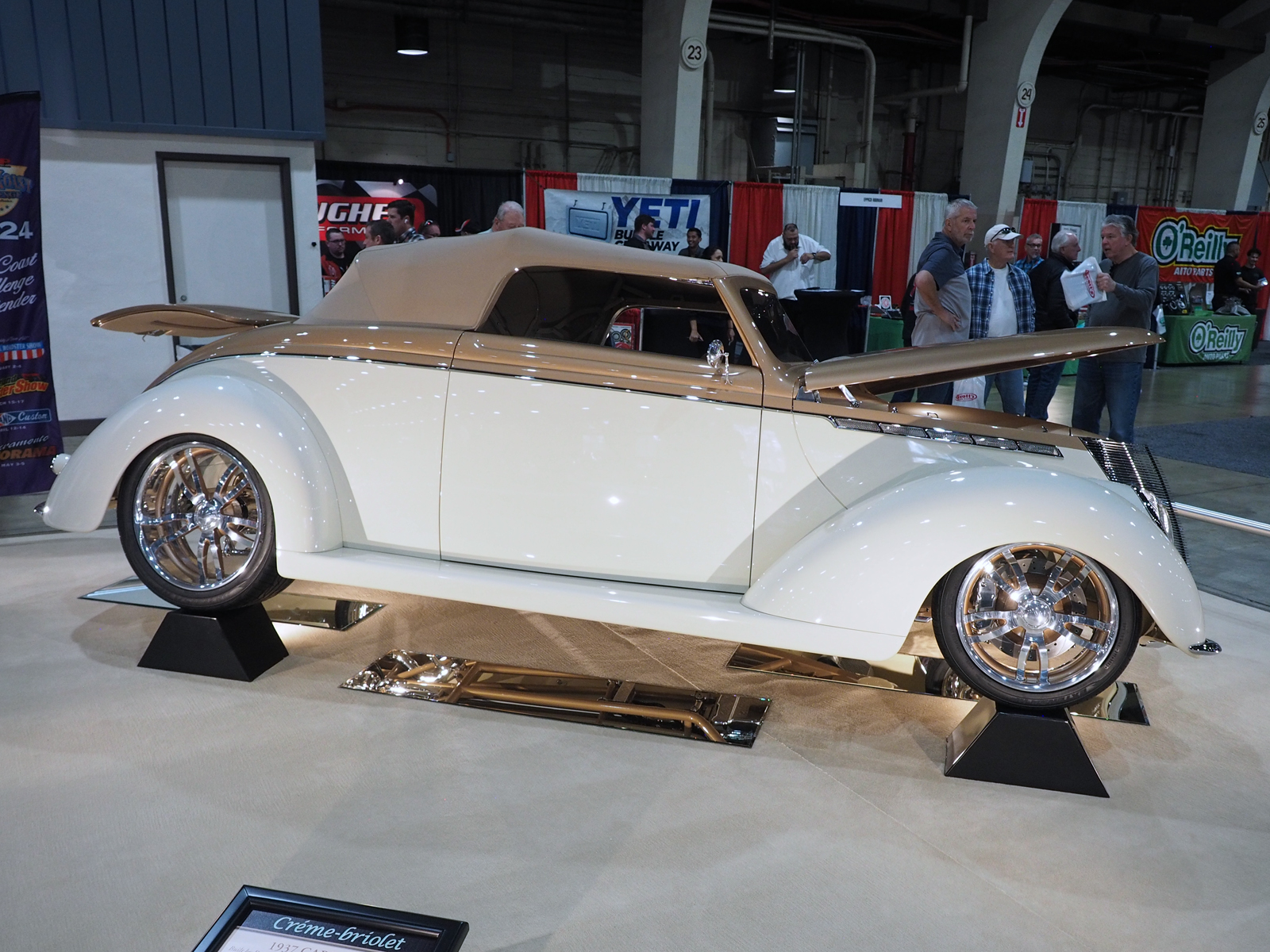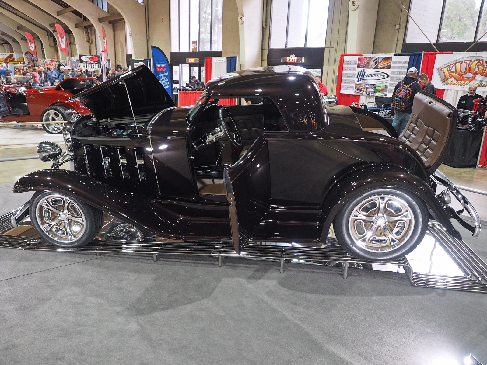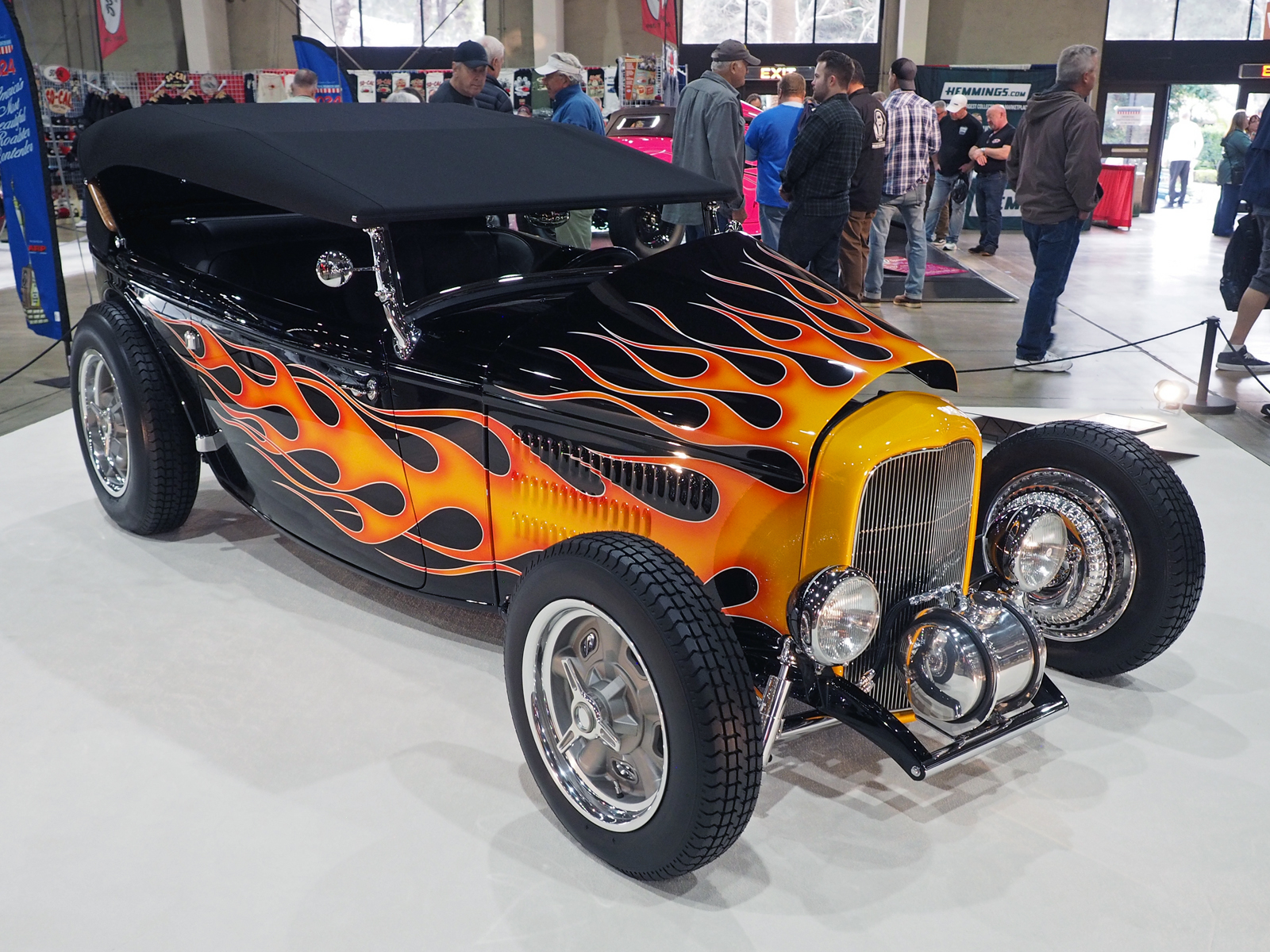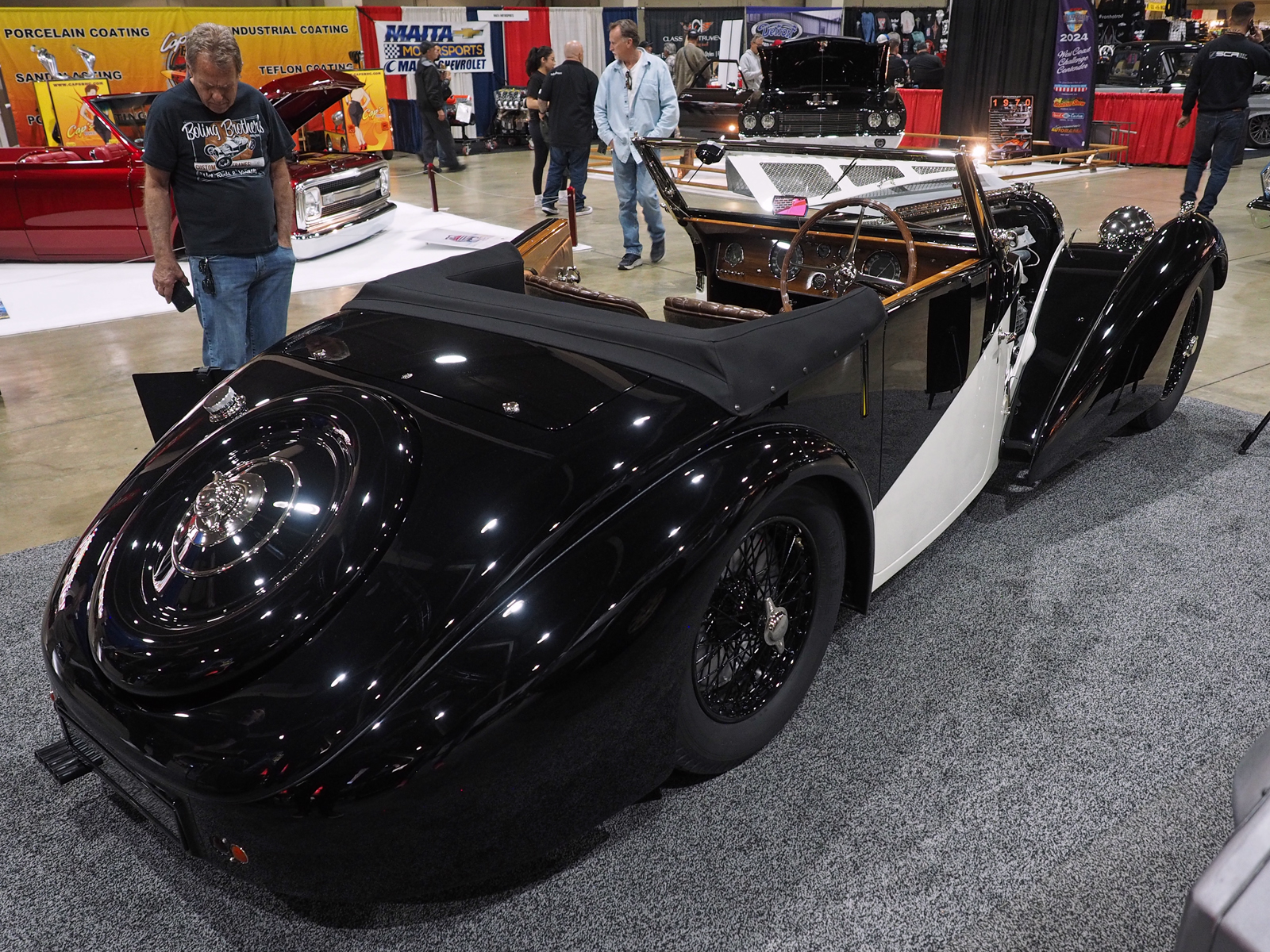 The Grand National Roadster Show, 2024David G. FoxAMBR CompetitionFor decades, flawless execution has been the hallmark of cars participating in the competition to be named America's Most Beautiful Roadster. This year there were nine entries. Phantom Phaetons It seems undeniable that the popularity of the 1932 Ford has reigned supreme and unwavering since they became financially available to hotrodders and since they began to be "fixed up" by early Ford V8 restorers. Certainly, Model Ts, Model As, Model 40s, etc., have always had their devotees, and will continue to do so. But the popularity of the Deuce has remained strong. And all of that seems to go double for the roadsters. Seven of nine AMBR contestants this year were '32 Fords, all but two were roadsters. Since the '32 was produced for only nine months and has always been so popular, the need for more "tin" spawned a reproduction market. From Dee Wescott's faithful and well-constructed fiberglass roadster bodies to the various modern steel panels and complete assemblies from Brookville Roadster, '32s continue to be pieced together or built all new. But what's a hotrodder to do with a need for a drive in a topless '32 Ford – sun on the face, wind in the hair, the rumble from a healthy V8 echoing from the back – and a desire to share that experience with more than one other person at a time? Throw in the fact that rodders have typically shied away from two too many doors. What to do? Ford's product line for 1930 and 1931 included, in addition to the standard four-door phaeton, a somewhat more elegantly turned out two-door open touring car called a Deluxe Phaeton. How about a '32 Deluxe Phaeton? Ford didn't make one. A few years ago, Brookville Roadster set out to do what Ford did not, and they enlisted the extraordinary talent of Chip Foose to design and build the prototype. A production run of 32 units was planned. On examination, you can tell that Chip borrowed from Brookville's existing '32 Ford body panel stash. One might liken the suicide door shape and fitment to a '33. But the cowl and door panels start with '32 three-window Deluxe Coupe stampings. Thus, there is continuity from the Model A days begging to refer to this new body style as a Deluxe Phaeton. These Brookville bodies were the outward visual basis for two contenders in the 2024 America's Most Beautiful Roadster competition Beth Myers, Skippack PA, 1932 Ford America's Most Beautiful Roadster Beth Myers' black, channeled two-door phaeton was built by the team at Roy Brizio Street Rods in South San Francisco. The foundation consists of: fully boxed frame rails, Moal torsion-bar suspension, Bell front axle, Winters Quick Change differential, and Johnson Hot Rod Shop Kinmont-style disk brakes. Under the hood is a fuel-injected Roush 427ci engine. Credits include: Vintage Color Studios for final body prep and paint, Sid Chavers for the interior, Sherm's Custom Plating, flames by Art Himsl, and pinstriping by Eric Reyes. The body on Beth's car received numerous nips and tucks – some mild cosmetic tweaks, others, such as the raised and re-radiused rear wheel wells, likely necessitated by the body being channeled over the frame. The rear of the body has been reshaped to be more like that of a two-door sedan. The windshield and top have been chopped three inches. Beth Myers' 2024 AMBR winner shouts hot rod, but is every bit as much the coach-build as any of the others in the field. Ken Reister, Littleton CO, 1932 Ford AMBR Outstanding Display, Paint, Interior As you can see, Ken chose a different approach to the look of his phaeton, which was built in his shop with finish work completed at Squeeg's Kustoms in Arizona. It's all quite elegant. Squeeg's was responsible for applying the Candy Apple Red over gold base paint, including subtle ghost painting (which, unfortunately, barely shows in the photographs). Other credits include: Reister's Rod Shop for the chassis, Recovery Room Hot Rod Interiors for the premium leather upholstery and wool carpet inside, Sid Chavers for the Hartz cloth top, and Custom Chrome for plating. Truespoke wire wheels are spun by a 340hp fuel-injected Ford 302 backed by a Ford 4R70 transmission. These two phantom phaetons are not the first to compete for the AMBR trophy. For the 2019 show, Gary Corkell used Brookville body number three in the construction of a full-fendered car powered by a 1953 DeSoto hemi engine. Reinforcing the potential of such bodies, Tom Sargis' bid for the AMBR that year was a '33 Ford Phaeton with a body converted to a two-door by Steve's Restorations. George Poteet's remarkable '36 Ford "3 Penny Roadster" was that year's AMBR winner. Also in 2019, Beth Myers' other '32 two-door phaeton (Brookville body number 2), was displayed in Brizio's area. An ultra-stock looker, complete with Washington Blue paint, black fenders, cream painted wire wheels, etc., it received a first-place finish in the Pre-1935 Touring Class. Full Kugel independent suspension belied the stock coach-built look of that beautiful car. Ken and Tina Thurm, Orange CA, 1932 Ford Ford Coyote engine with Gurney Weslake fuel injection Ramin and Karla Younessi, Fort Collins CO, 1934 Ford AMBR Outstanding Engine "The Throwback" sports a 255ci Mercury flathead, four James Butler, Prescott AZ, 1932 Ford Gary Holyoak, Cedar City UT, 1932 Ford H&H Best Dressed Flathead Mekenzie Murphy, Loveland OH, 1932 Ford AMBR Outstanding Detail, Engineering, Undercarriage Bob Mansonin, Auburn CA, 1932 Ford Dale and Lottie Short, Henderson CO, 1932 Chevrolet Jack Chisenhall, San Antonio TX, 1932 Ford 2023 America's Most Beautiful Roadster Bill Lindig, Pomona CA, 1927 Ford 2012 America's Most Beautiful Roadster Al Slonaker Memorial AwardThe Al Slonaker Memorial Award competition works much like the AMBR competition. The difference is that the cars can be anything but roadsters. Here is a quick look at the 2024 Slonaker contestants. David Rush, Oklahoma City OK, 1959 Chevrolet Al 