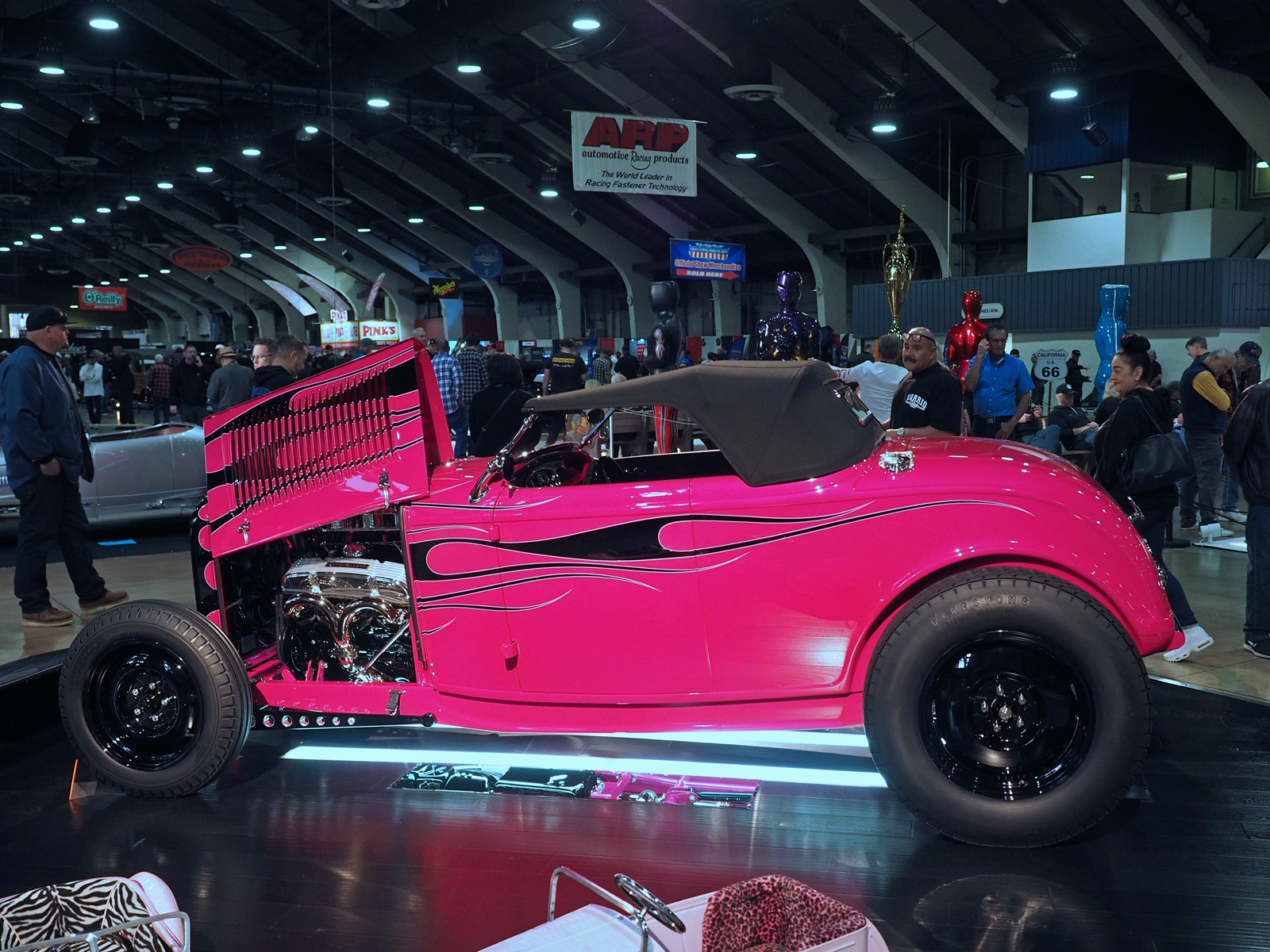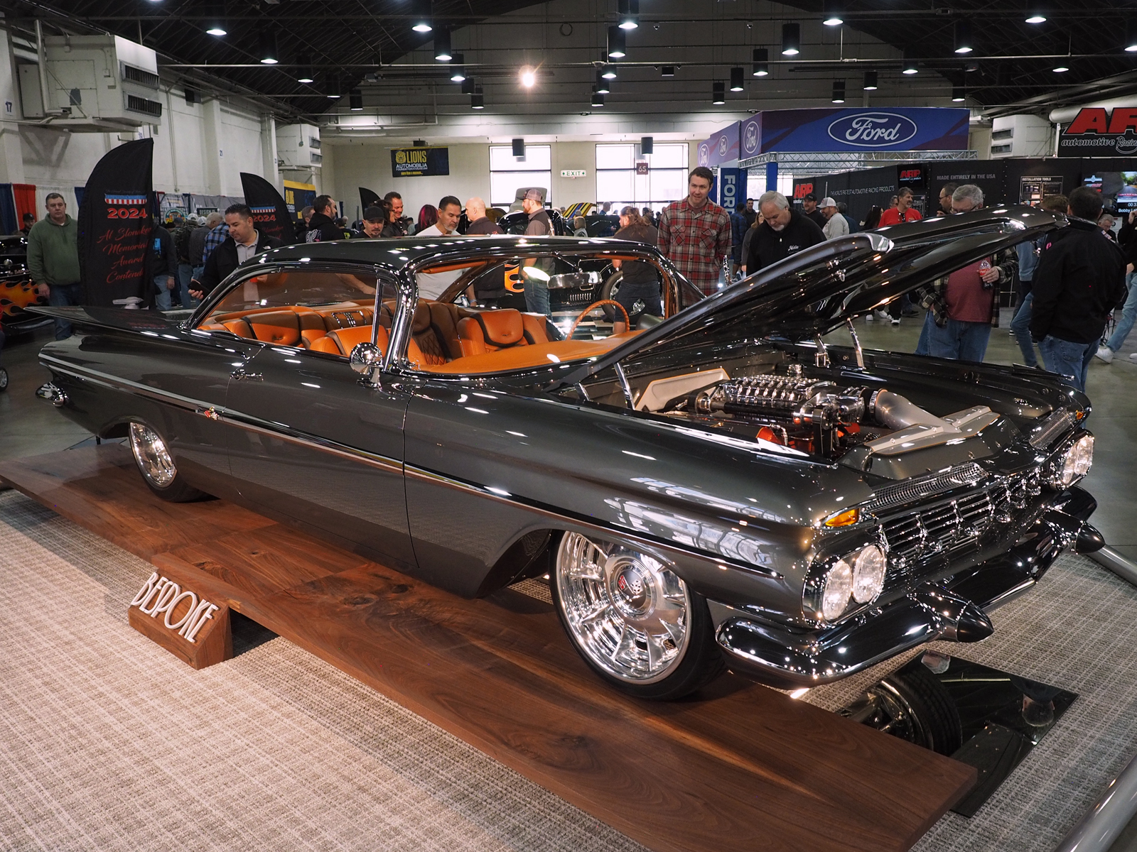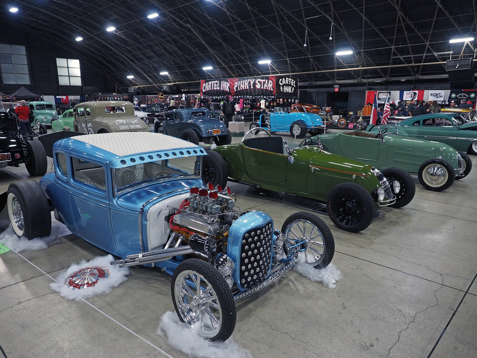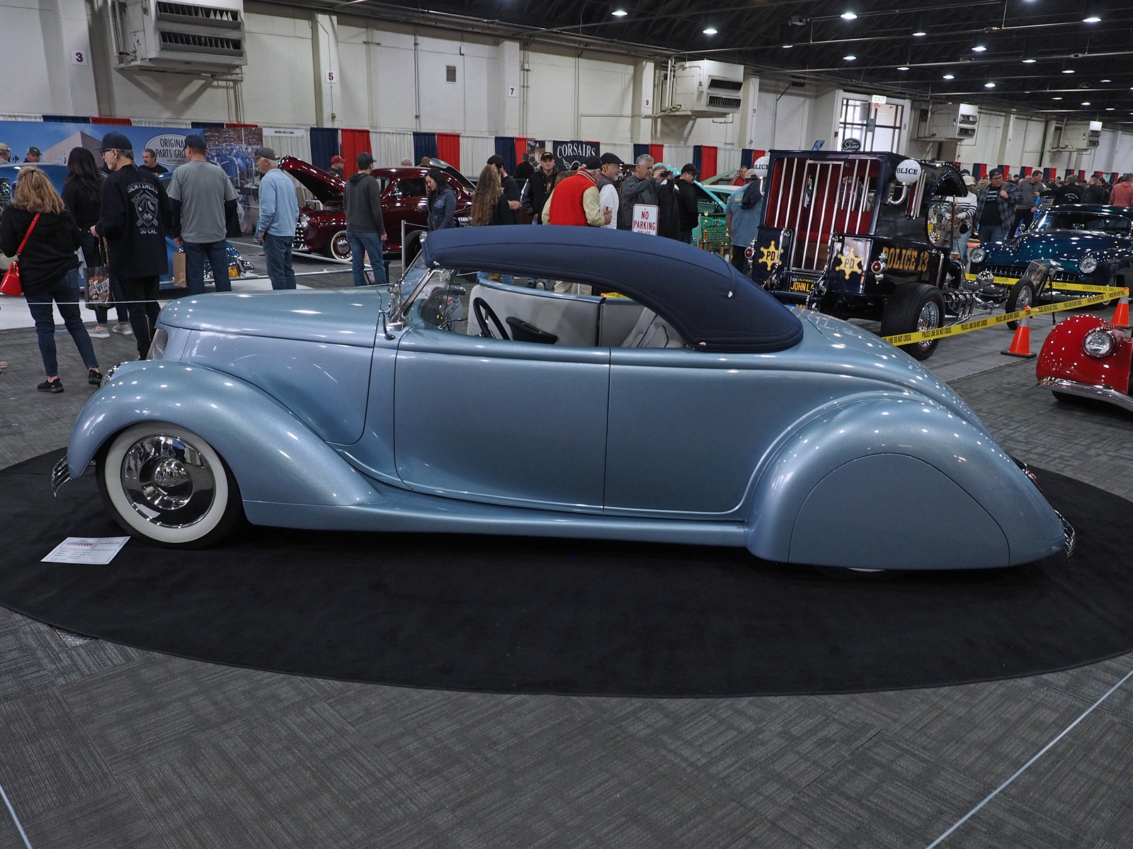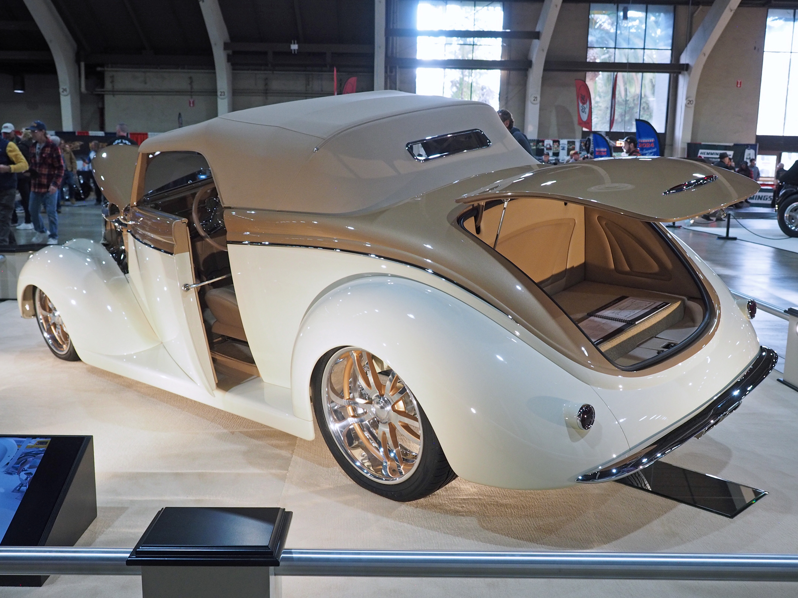 The Grand National Roadster Show, 2024David G. FoxAMBR CompetitionFor decades, flawless execution has been the hallmark of cars participating in the competition to be named America's Most Beautiful Roadster. This year there were nine entries. Phantom Phaetons It seems undeniable that the popularity of the 1932 Ford has reigned supreme and unwavering since they became financially available to hotrodders and since they began to be "fixed up" by early Ford V8 restorers. Certainly, Model Ts, Model As, Model 40s, etc., have always had their devotees, and will continue to do so. But the popularity of the Deuce has remained strong. And all of that seems to go double for the roadsters. Seven of nine AMBR contestants this year were '32 Fords, all but two were roadsters. Since the '32 was produced for only nine months and has always been so popular, the need for more "tin" spawned a reproduction market. From Dee Wescott's faithful and well-constructed fiberglass roadster bodies to the various modern steel panels and complete assemblies from Brookville Roadster, '32s continue to be pieced together or built all new. But what's a hotrodder to do with a need for a drive in a topless '32 Ford – sun on the face, wind in the hair, the rumble from a healthy V8 echoing from the back – and a desire to share that experience with more than one other person at a time? Throw in the fact that rodders have typically shied away from two too many doors. What to do? Ford's product line for 1930 and 1931 included, in addition to the standard four-door phaeton, a somewhat more elegantly turned out two-door open touring car called a Deluxe Phaeton. How about a '32 Deluxe Phaeton? Ford didn't make one. A few years ago, Brookville Roadster set out to do what Ford did not, and they enlisted the extraordinary talent of Chip Foose to design and build the prototype. A production run of 32 units was planned. On examination, you can tell that Chip borrowed from Brookville's existing '32 Ford body panel stash. One might liken the suicide door shape and fitment to a '33. But the cowl and door panels start with '32 three-window Deluxe Coupe stampings. Thus, there is continuity from the Model A days begging to refer to this new body style as a Deluxe Phaeton. These Brookville bodies were the outward visual basis for two contenders in the 2024 America's Most Beautiful Roadster competition Beth Myers, Skippack PA, 1932 Ford America's Most Beautiful Roadster Beth Myers' black, channeled two-door phaeton was built by the team at Roy Brizio Street Rods in South San Francisco. The foundation consists of: fully boxed frame rails, Moal torsion-bar suspension, Bell front axle, Winters Quick Change differential, and Johnson Hot Rod Shop Kinmont-style disk brakes. Under the hood is a fuel-injected Roush 427ci engine. Credits include: Vintage Color Studios for final body prep and paint, Sid Chavers for the interior, Sherm's Custom Plating, flames by Art Himsl, and pinstriping by Eric Reyes. The body on Beth's car received numerous nips and tucks – some mild cosmetic tweaks, others, such as the raised and re-radiused rear wheel wells, likely necessitated by the body being channeled over the frame. The rear of the body has been reshaped to be more like that of a two-door sedan. The windshield and top have been chopped three inches. Beth Myers' 2024 AMBR winner shouts hot rod, but is every bit as much the coach-build as any of the others in the field. Ken Reister, Littleton CO, 1932 Ford AMBR Outstanding Display, Paint, Interior As you can see, Ken chose a different approach to the look of his phaeton, which was built in his shop with finish work completed at Squeeg's Kustoms in Arizona. It's all quite elegant. Squeeg's was responsible for applying the Candy Apple Red over gold base paint, including subtle ghost painting (which, unfortunately, barely shows in the photographs). Other credits include: Reister's Rod Shop for the chassis, Recovery Room Hot Rod Interiors for the premium leather upholstery and wool carpet inside, Sid Chavers for the Hartz cloth top, and Custom Chrome for plating. Truespoke wire wheels are spun by a 340hp fuel-injected Ford 302 backed by a Ford 4R70 transmission. These two phantom phaetons are not the first to compete for the AMBR trophy. For the 2019 show, Gary Corkell used Brookville body number three in the construction of a full-fendered car powered by a 1953 DeSoto hemi engine. Reinforcing the potential of such bodies, Tom Sargis' bid for the AMBR that year was a '33 Ford Phaeton with a body converted to a two-door by Steve's Restorations. George Poteet's remarkable '36 Ford "3 Penny Roadster" was that year's AMBR winner. Also in 2019, Beth Myers' other '32 two-door phaeton (Brookville body number 2), was displayed in Brizio's area. An ultra-stock looker, complete with Washington Blue paint, black fenders, cream painted wire wheels, etc., it received a first-place finish in the Pre-1935 Touring Class. Full Kugel independent suspension belied the stock coach-built look of that beautiful car. Ken and Tina Thurm, Orange CA, 1932 Ford Ford Coyote engine with Gurney Weslake fuel injection Ramin and Karla Younessi, Fort Collins CO, 1934 Ford AMBR Outstanding Engine "The Throwback" sports a 255ci Mercury flathead, four James Butler, Prescott AZ, 1932 Ford Gary Holyoak, Cedar City UT, 1932 Ford H&H Best Dressed Flathead Mekenzie Murphy, Loveland OH, 1932 Ford AMBR Outstanding Detail, Engineering, Undercarriage Bob Mansonin, Auburn CA, 1932 Ford Dale and Lottie Short, Henderson CO, 1932 Chevrolet Jack Chisenhall, San Antonio TX, 1932 Ford 2023 America's Most Beautiful Roadster Bill Lindig, Pomona CA, 1927 Ford 2012 America's Most Beautiful Roadster Al Slonaker Memorial AwardThe Al Slonaker Memorial Award competition works much like the AMBR competition. The difference is that the cars can be anything but roadsters. Here is a quick look at the 2024 Slonaker contestants. David Rush, Oklahoma City OK, 1959 Chevrolet Al 