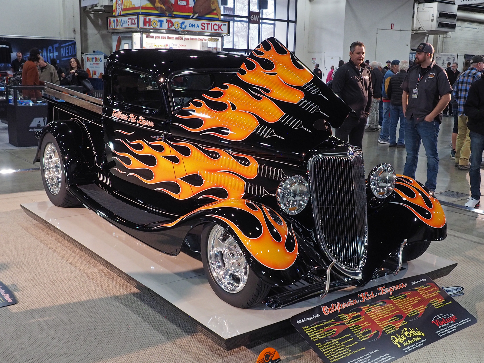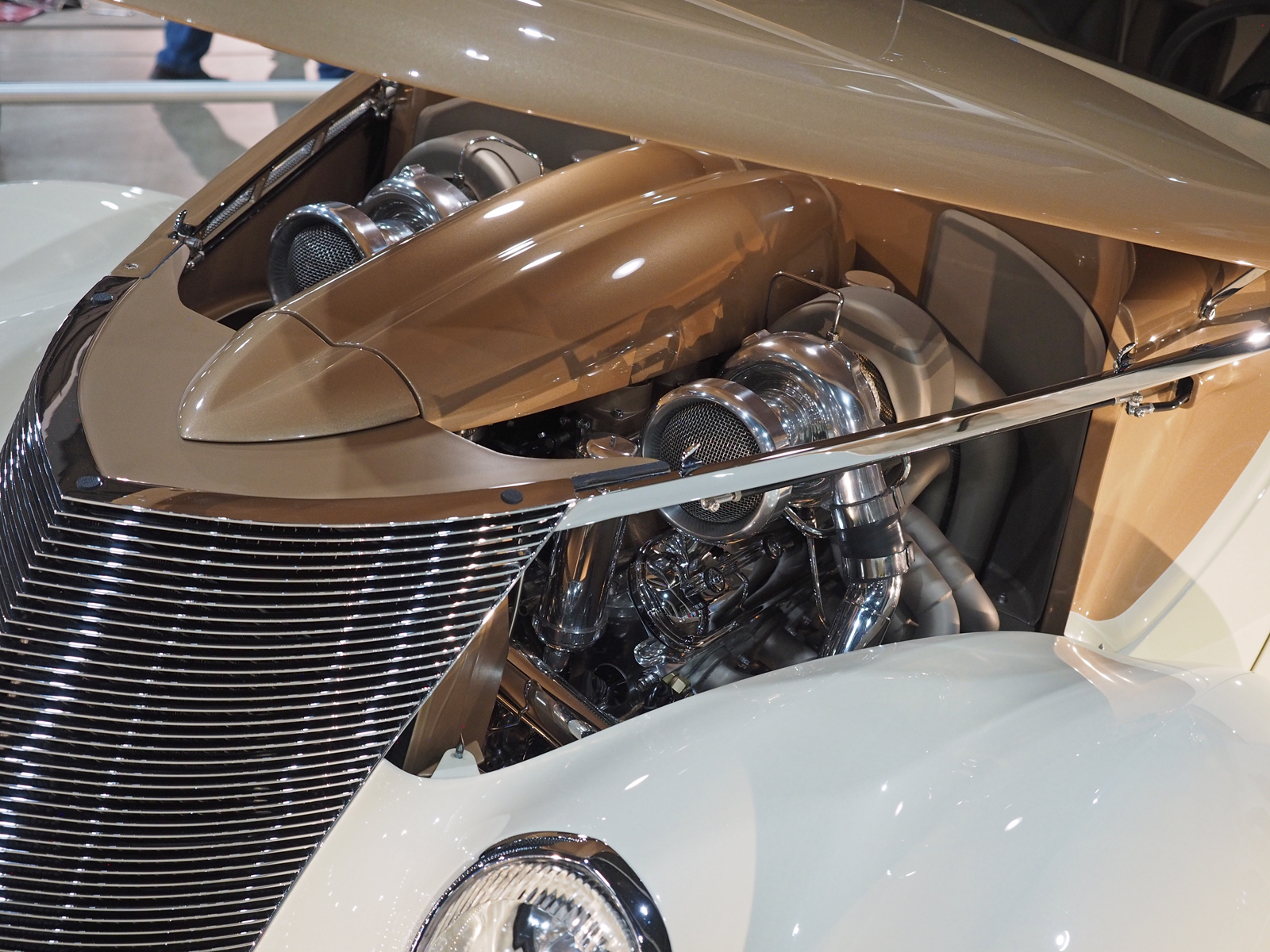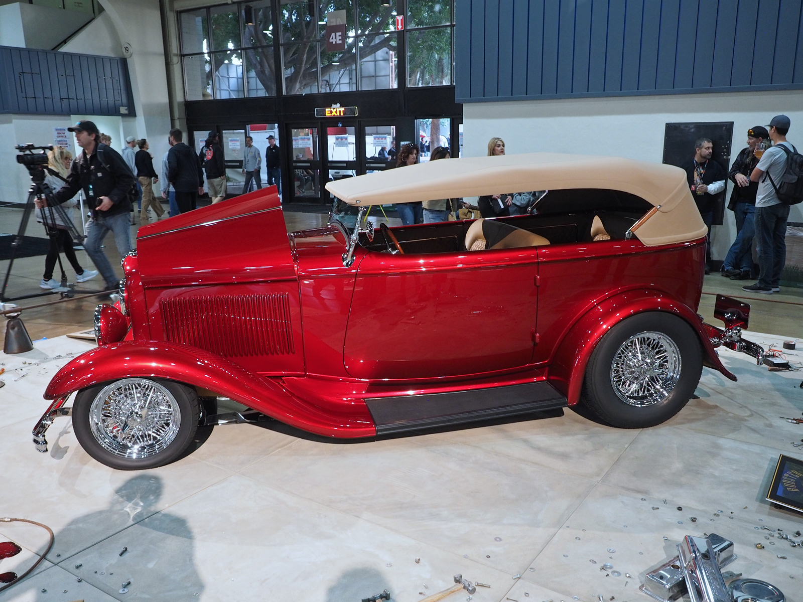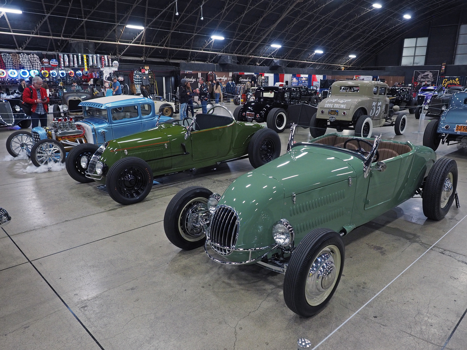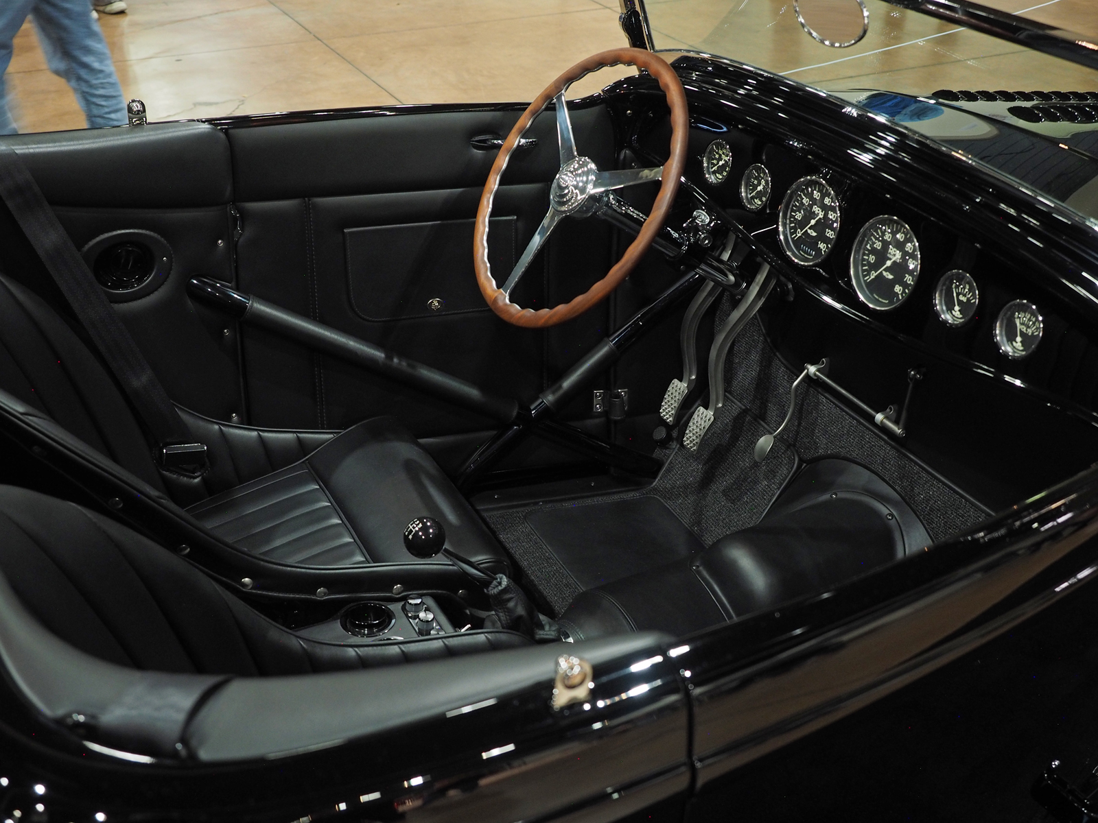 The Grand National Roadster Show, 2024David G. FoxAMBR CompetitionFor decades, flawless execution has been the hallmark of cars participating in the competition to be named America's Most Beautiful Roadster. This year there were nine entries. Phantom Phaetons It seems undeniable that the popularity of the 1932 Ford has reigned supreme and unwavering since they became financially available to hotrodders and since they began to be "fixed up" by early Ford V8 restorers. Certainly, Model Ts, Model As, Model 40s, etc., have always had their devotees, and will continue to do so. But the popularity of the Deuce has remained strong. And all of that seems to go double for the roadsters. Seven of nine AMBR contestants this year were '32 Fords, all but two were roadsters. Since the '32 was produced for only nine months and has always been so popular, the need for more "tin" spawned a reproduction market. From Dee Wescott's faithful and well-constructed fiberglass roadster bodies to the various modern steel panels and complete assemblies from Brookville Roadster, '32s continue to be pieced together or built all new. But what's a hotrodder to do with a need for a drive in a topless '32 Ford – sun on the face, wind in the hair, the rumble from a healthy V8 echoing from the back – and a desire to share that experience with more than one other person at a time? Throw in the fact that rodders have typically shied away from two too many doors. What to do? Ford's product line for 1930 and 1931 included, in addition to the standard four-door phaeton, a somewhat more elegantly turned out two-door open touring car called a Deluxe Phaeton. How about a '32 Deluxe Phaeton? Ford didn't make one. A few years ago, Brookville Roadster set out to do what Ford did not, and they enlisted the extraordinary talent of Chip Foose to design and build the prototype. A production run of 32 units was planned. On examination, you can tell that Chip borrowed from Brookville's existing '32 Ford body panel stash. One might liken the suicide door shape and fitment to a '33. But the cowl and door panels start with '32 three-window Deluxe Coupe stampings. Thus, there is continuity from the Model A days begging to refer to this new body style as a Deluxe Phaeton. These Brookville bodies were the outward visual basis for two contenders in the 2024 America's Most Beautiful Roadster competition Beth Myers, Skippack PA, 1932 Ford America's Most Beautiful Roadster Beth Myers' black, channeled two-door phaeton was built by the team at Roy Brizio Street Rods in South San Francisco. The foundation consists of: fully boxed frame rails, Moal torsion-bar suspension, Bell front axle, Winters Quick Change differential, and Johnson Hot Rod Shop Kinmont-style disk brakes. Under the hood is a fuel-injected Roush 427ci engine. Credits include: Vintage Color Studios for final body prep and paint, Sid Chavers for the interior, Sherm's Custom Plating, flames by Art Himsl, and pinstriping by Eric Reyes. The body on Beth's car received numerous nips and tucks – some mild cosmetic tweaks, others, such as the raised and re-radiused rear wheel wells, likely necessitated by the body being channeled over the frame. The rear of the body has been reshaped to be more like that of a two-door sedan. The windshield and top have been chopped three inches. Beth Myers' 2024 AMBR winner shouts hot rod, but is every bit as much the coach-build as any of the others in the field. Ken Reister, Littleton CO, 1932 Ford AMBR Outstanding Display, Paint, Interior As you can see, Ken chose a different approach to the look of his phaeton, which was built in his shop with finish work completed at Squeeg's Kustoms in Arizona. It's all quite elegant. Squeeg's was responsible for applying the Candy Apple Red over gold base paint, including subtle ghost painting (which, unfortunately, barely shows in the photographs). Other credits include: Reister's Rod Shop for the chassis, Recovery Room Hot Rod Interiors for the premium leather upholstery and wool carpet inside, Sid Chavers for the Hartz cloth top, and Custom Chrome for plating. Truespoke wire wheels are spun by a 340hp fuel-injected Ford 302 backed by a Ford 4R70 transmission. These two phantom phaetons are not the first to compete for the AMBR trophy. For the 2019 show, Gary Corkell used Brookville body number three in the construction of a full-fendered car powered by a 1953 DeSoto hemi engine. Reinforcing the potential of such bodies, Tom Sargis' bid for the AMBR that year was a '33 Ford Phaeton with a body converted to a two-door by Steve's Restorations. George Poteet's remarkable '36 Ford "3 Penny Roadster" was that year's AMBR winner. Also in 2019, Beth Myers' other '32 two-door phaeton (Brookville body number 2), was displayed in Brizio's area. An ultra-stock looker, complete with Washington Blue paint, black fenders, cream painted wire wheels, etc., it received a first-place finish in the Pre-1935 Touring Class. Full Kugel independent suspension belied the stock coach-built look of that beautiful car. Ken and Tina Thurm, Orange CA, 1932 Ford Ford Coyote engine with Gurney Weslake fuel injection Ramin and Karla Younessi, Fort Collins CO, 1934 Ford AMBR Outstanding Engine "The Throwback" sports a 255ci Mercury flathead, four James Butler, Prescott AZ, 1932 Ford Gary Holyoak, Cedar City UT, 1932 Ford H&H Best Dressed Flathead Mekenzie Murphy, Loveland OH, 1932 Ford AMBR Outstanding Detail, Engineering, Undercarriage Bob Mansonin, Auburn CA, 1932 Ford Dale and Lottie Short, Henderson CO, 1932 Chevrolet Jack Chisenhall, San Antonio TX, 1932 Ford 2023 America's Most Beautiful Roadster Bill Lindig, Pomona CA, 1927 Ford 2012 America's Most Beautiful Roadster Al Slonaker Memorial AwardThe Al Slonaker Memorial Award competition works much like the AMBR competition. The difference is that the cars can be anything but roadsters. Here is a quick look at the 2024 Slonaker contestants. David Rush, Oklahoma City OK, 1959 Chevrolet Al 